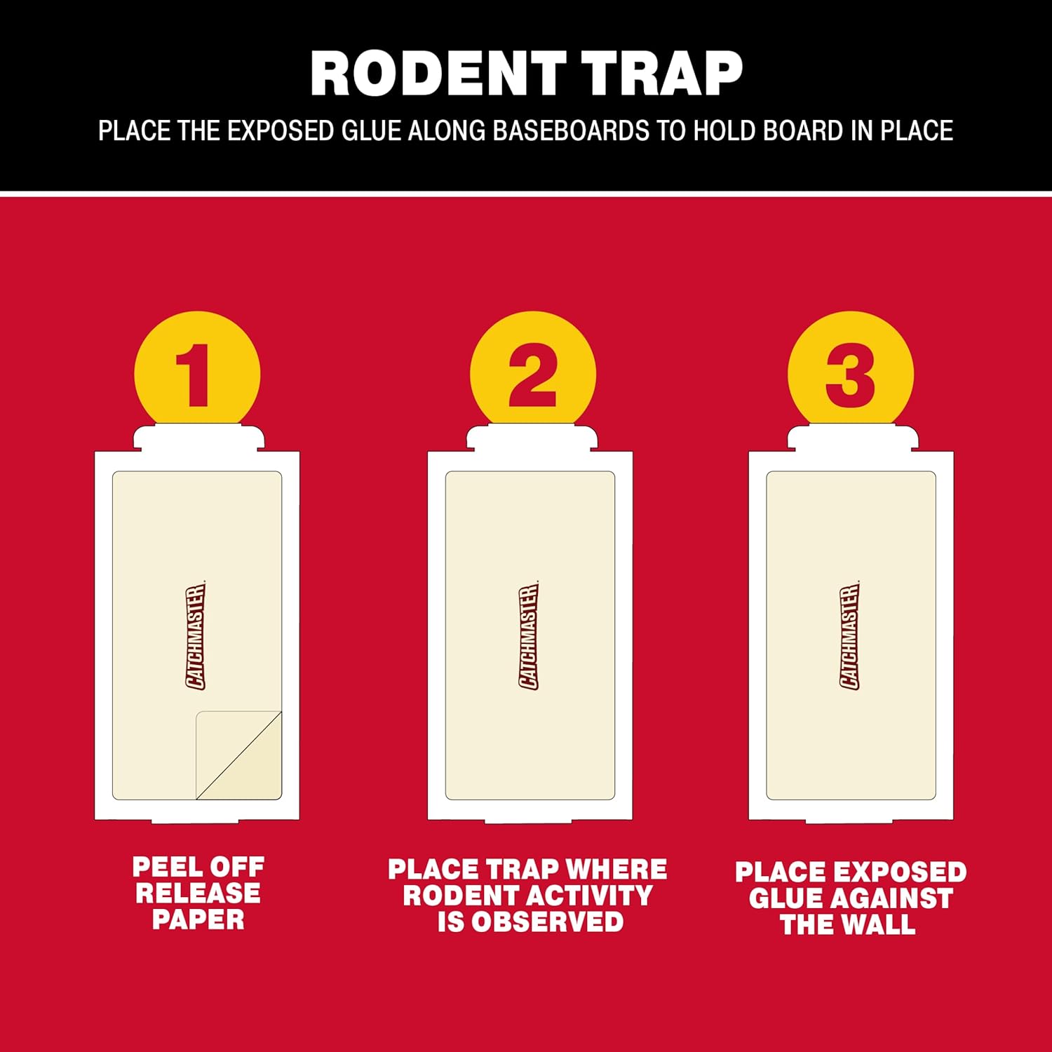 - YEAR-ROUND CONTROL: Catchmaster glue traps for mice and rats and insects are pesticide-free and mess-free. The sticky mouse traps are an effective and easy solution for insect and rodent problems. When placed in an area with normal conditions, insect and mouse glue traps indoor for home can last up to one full year.