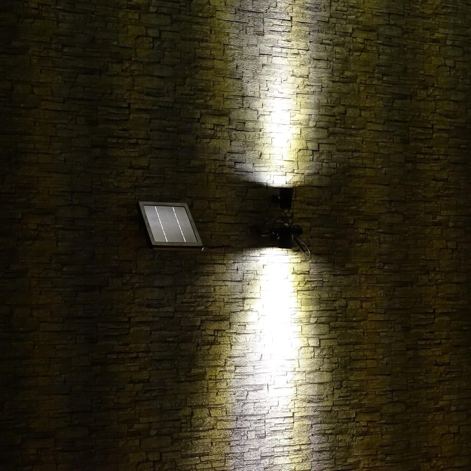 - New improved feature, two-way mounting: stake-to-ground OR wall-mount with mechanical fasteners to create soft downlight / uplight ascend. Package includes: 2*cast Aluminium solar light fixture with spike, 1*remote solar panel with spike