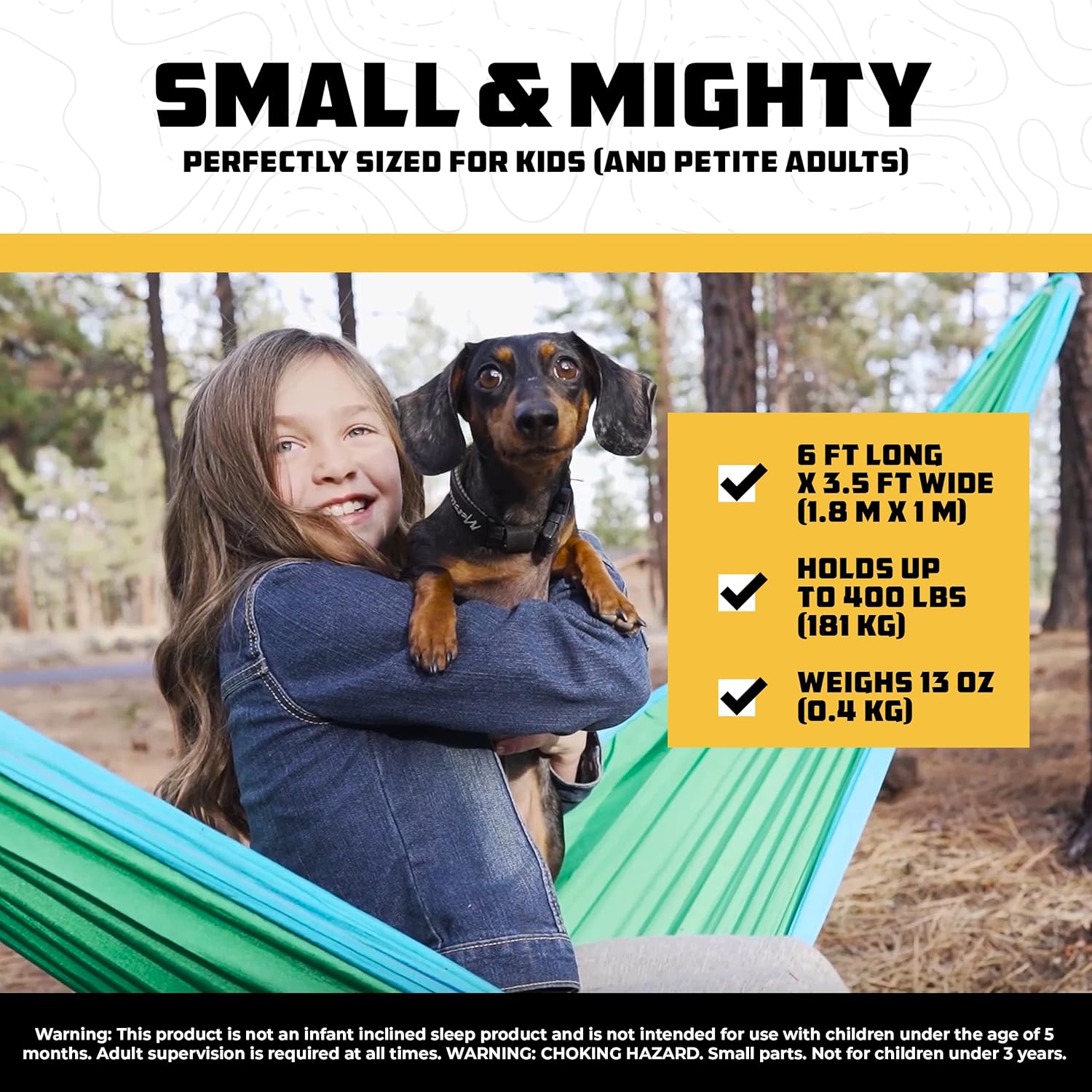 - Gift-Ready for Any Adventurer – This compact camping gear hammock in a bag makes a fun gift for young explorer outdoor lovers, and for kids of all ages to use anywhere - from the backyard to your next camping trip!