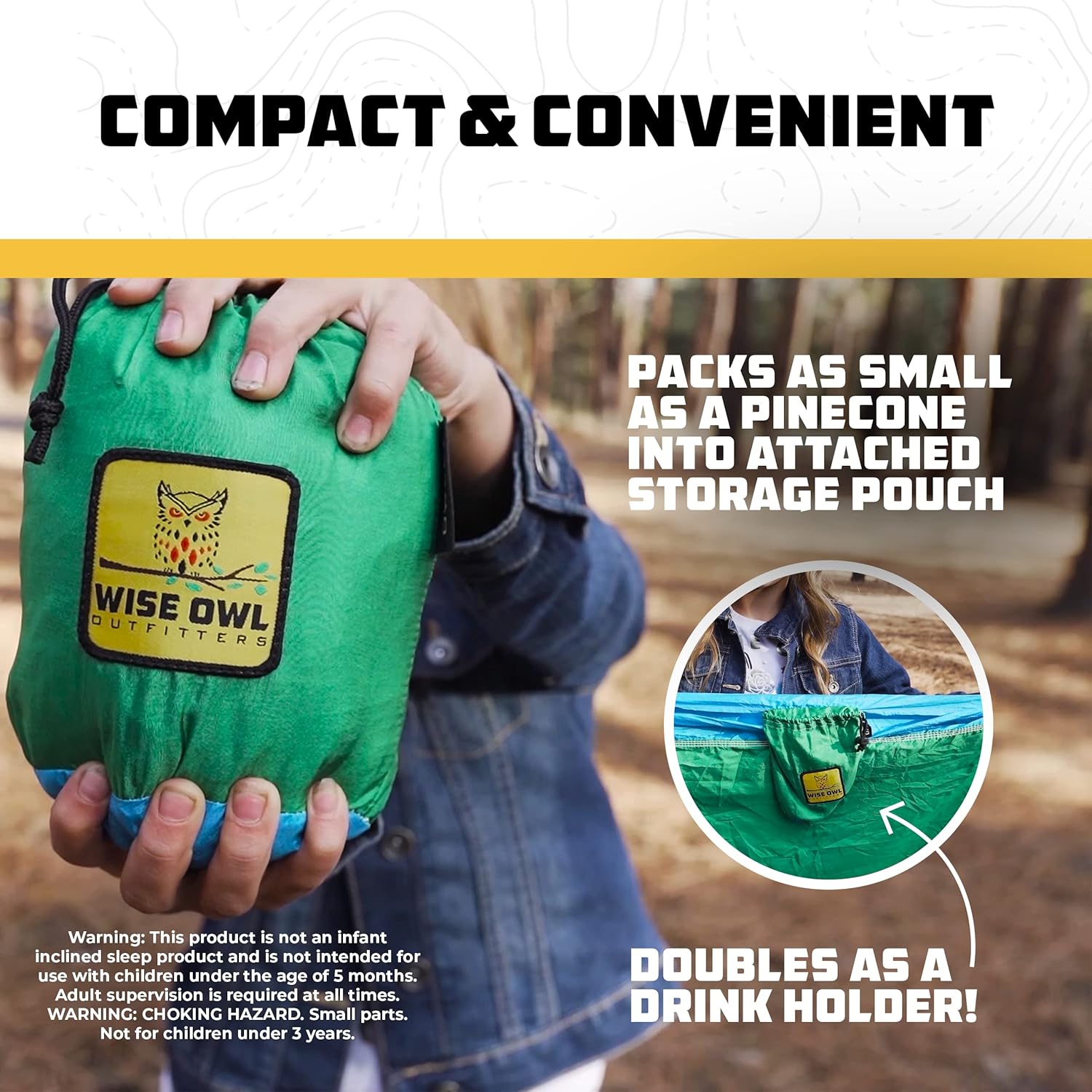 Wise Owl Outfitters Camping Hammock – 500lbs Portable Hammock with Tree Straps - Travel, Backpacking, Hiking, Outdoors Camping Gear - Single or Double