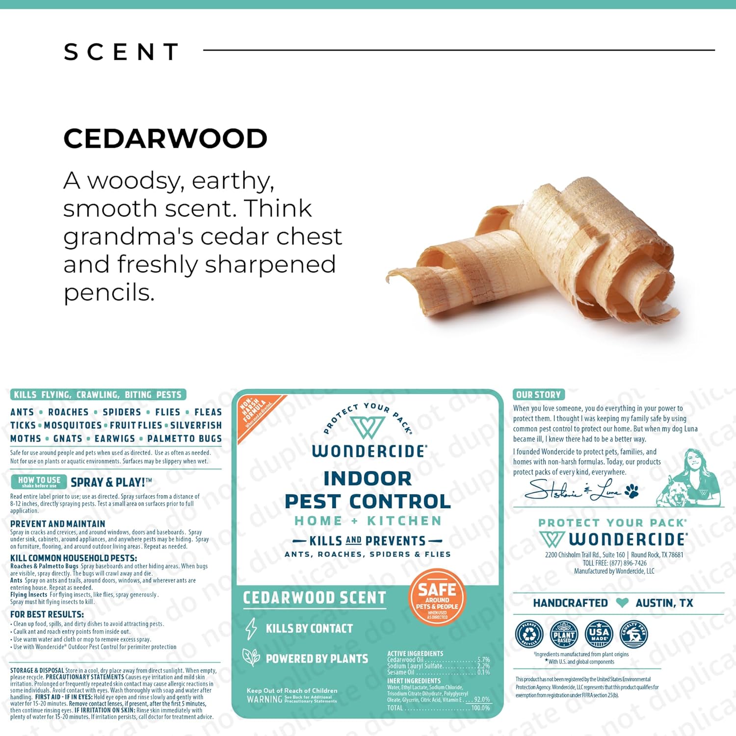 Wondercide - Indoor Pest Control Spray for Home and Kitchen - Ant, Roach, Spider, Fly, Flea, Bug Killer and Insect Repellent - with Natural Essential Oils - Pet and Family Safe — Cedarwood 32 oz