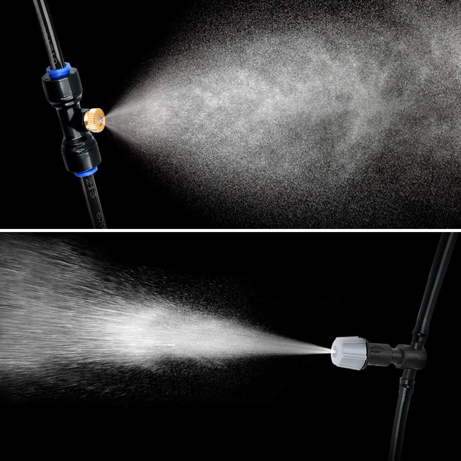 - Brass Mist Nozzles: Made of brass material, anti-rust and mist effectively. Mister tee connector is made of sturdy recyclable plastic material - good sealing and leakproof
