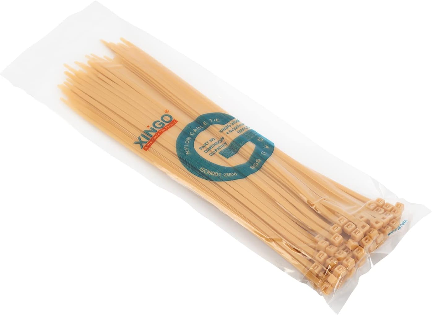 XINGO 100PCS Cable Zip Ties Heavy Duty, Premium Nylon Plastic Wire Ties with 50 Pounds Tensile Strength, Self-Locking Black Nylon Zip Ties for Indoor and Outdoor (12 inch, Gold)