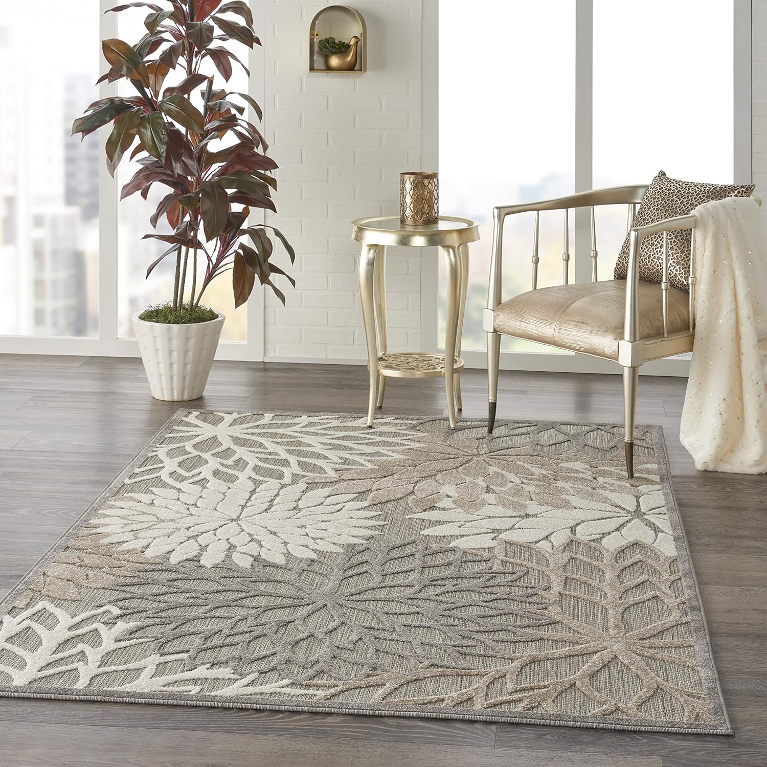 Nourison Home Aloha Indoor/Outdoor Floral Natural 5'3" x 7'5" Area Rug (5' x 8'), 5'3"X7'5",