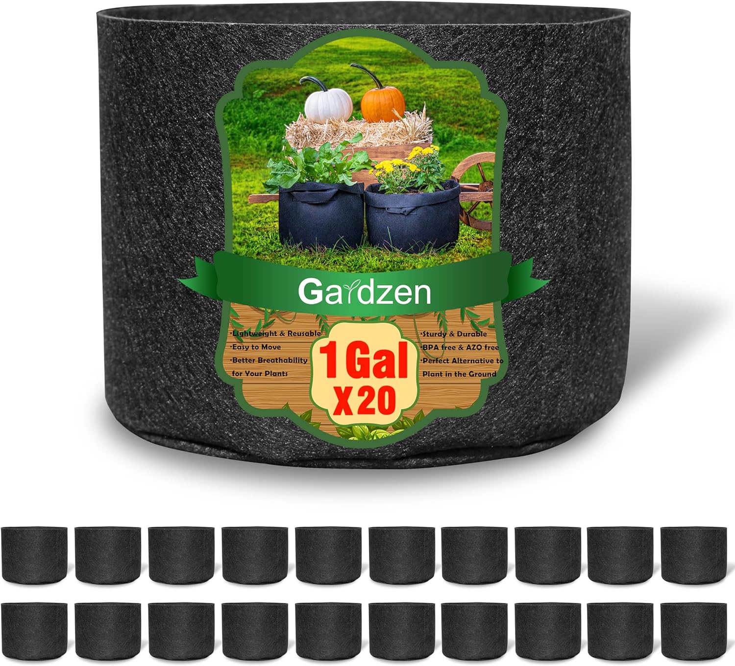 Gardzen 20-Pack 1 Gallon Nonwoven Grow Bags, Aeration Fabric Pots