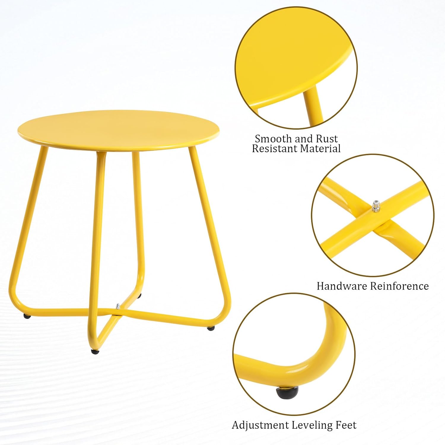 HollyHOME Round Metal Side Table, Rust-Resistant Patio Small Plant Stand, Outdoor 17.32'' Portable End Table for Balconies, Gardens, Living Rooms and Bedrooms, Yellow