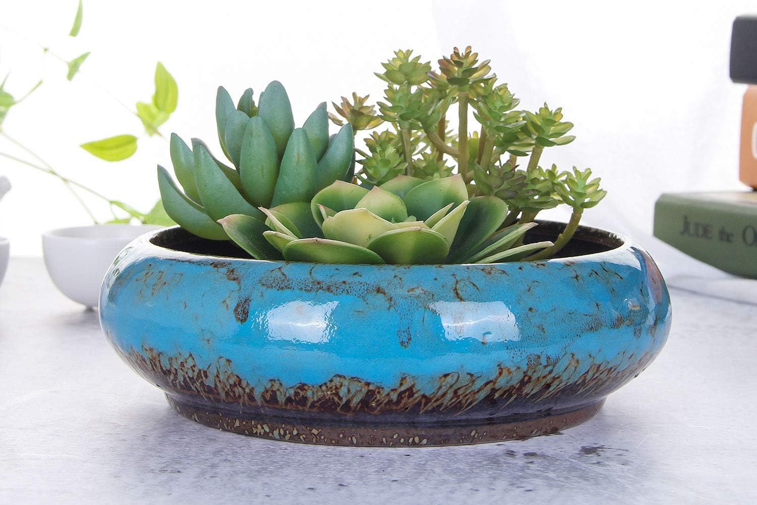 - Beautiful and Good Drainage - Beautiful colorful glazed. Each has a drainage hole in the bottom which would let the soil get a little dry between watering than to over-water.