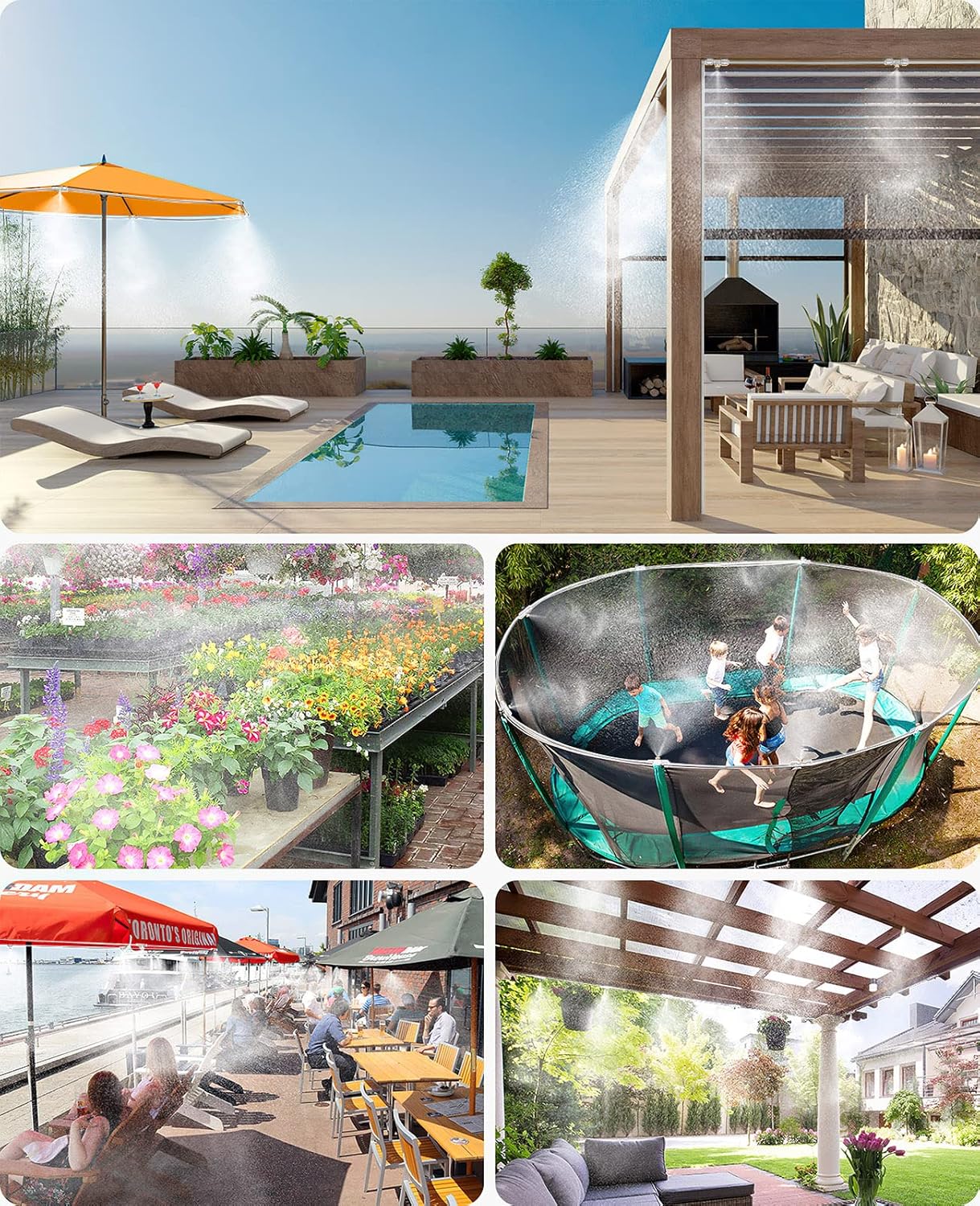 - Wide Application: Misting Cooling Systems widely apply to greenhouse, garden, trampoline, umbrella, livestock, chicken coop and many outside areas