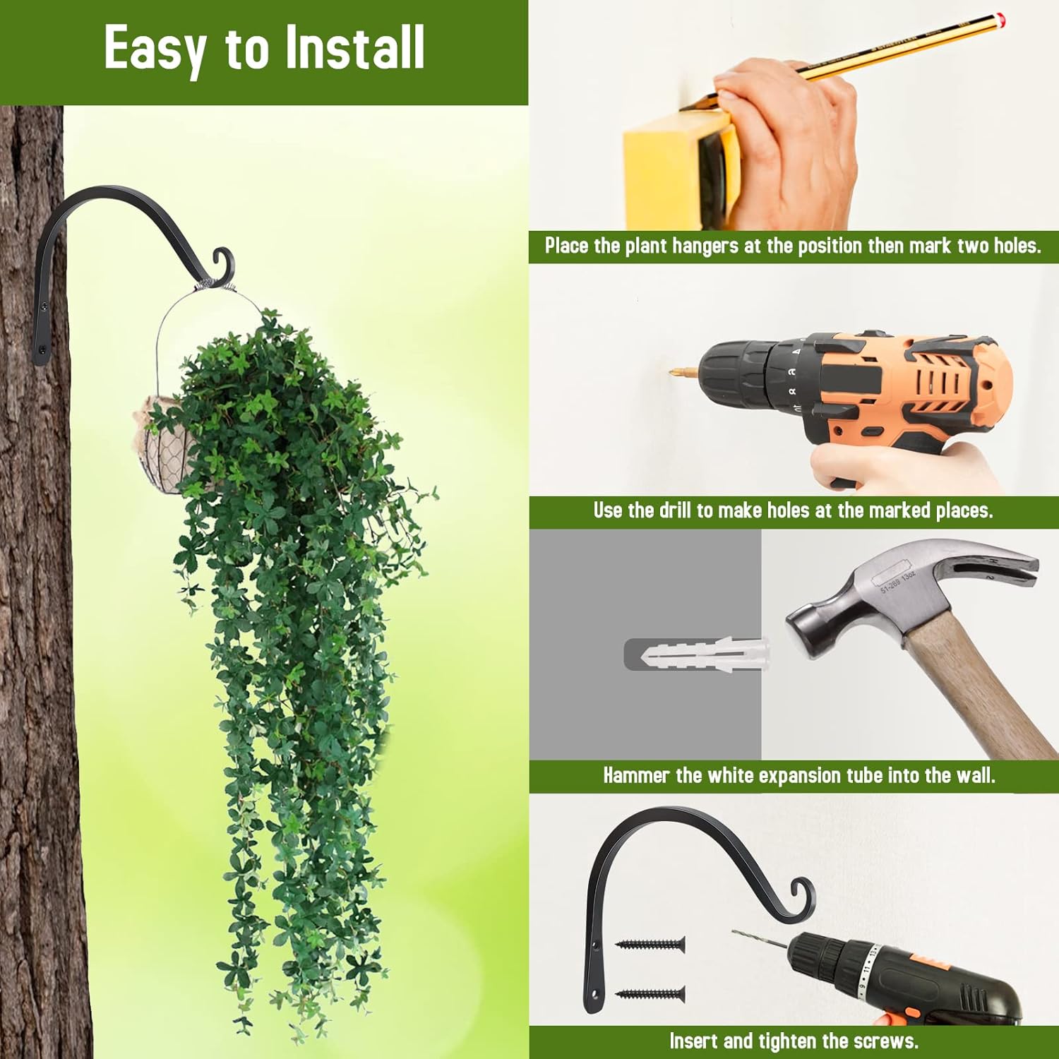 - 【MUTI-PURPOSE】 Heavy-duty hanging plant brackets are ideal for hanging large bird feeders, heavy lanterns, flower pots, baskets, wind chimes use. Whether indoor or outdoor, they can bring you beauty and elegance.