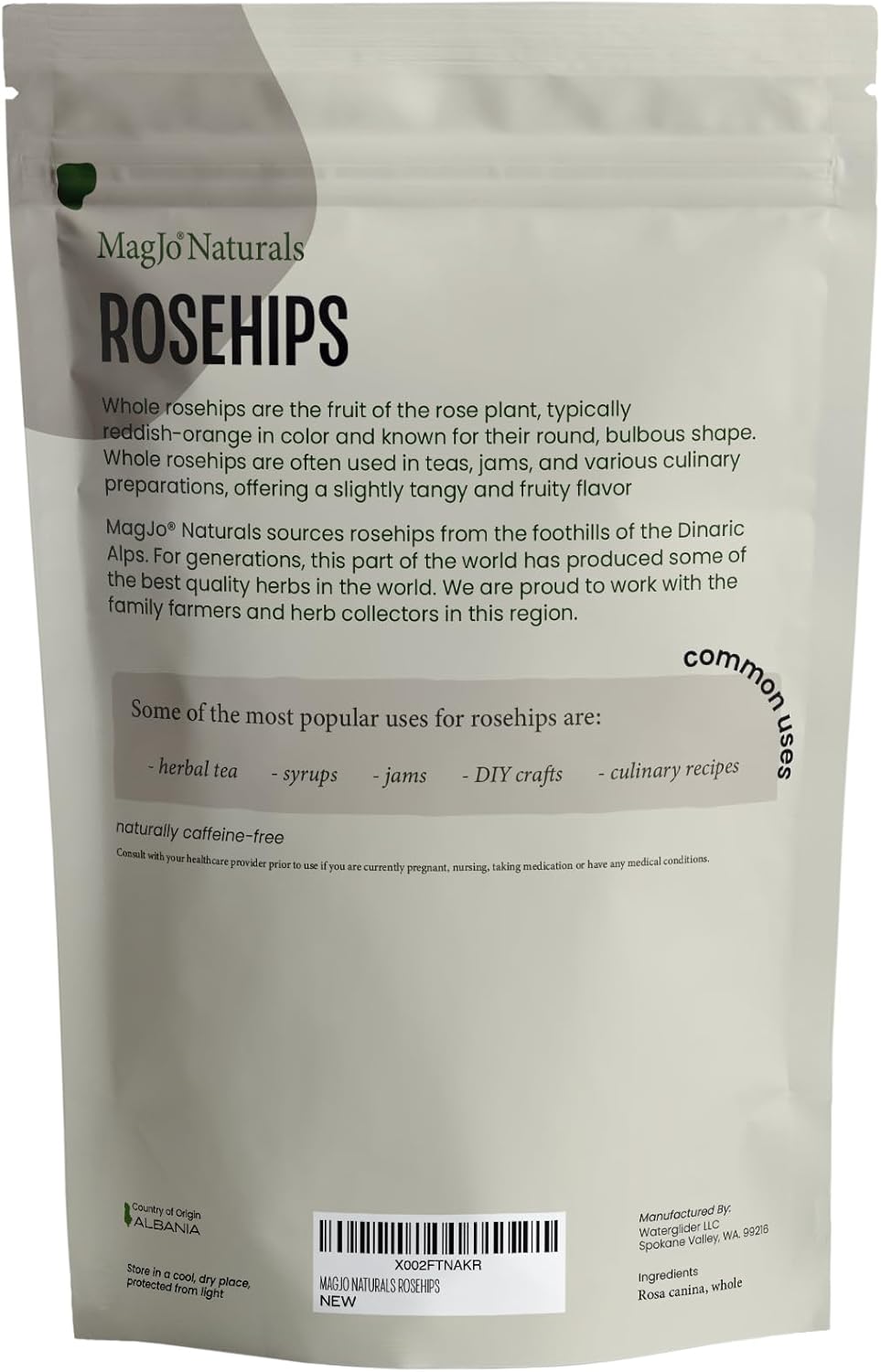 - WHOLE ROSEHIPS: 1 lb of Rosa canina packaged in a high quality resealable kraft bag