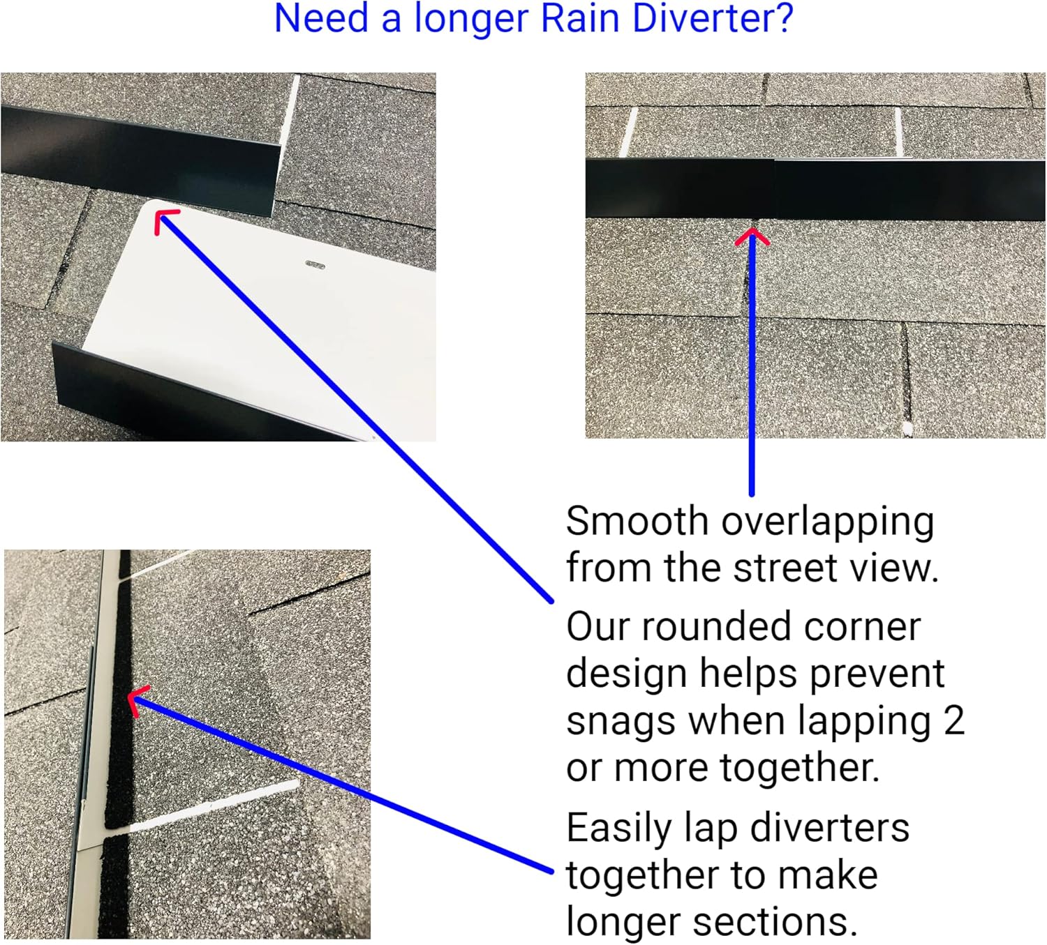 - {Easy to Install} - Simply slide under shingle tabs and fasten with included nails. - Each order includes instalaltion instructions and hardware. - Rounded corners and slotted nail holes make for simple installation. - Can be easily overlapped with other diverters to make longer sections.