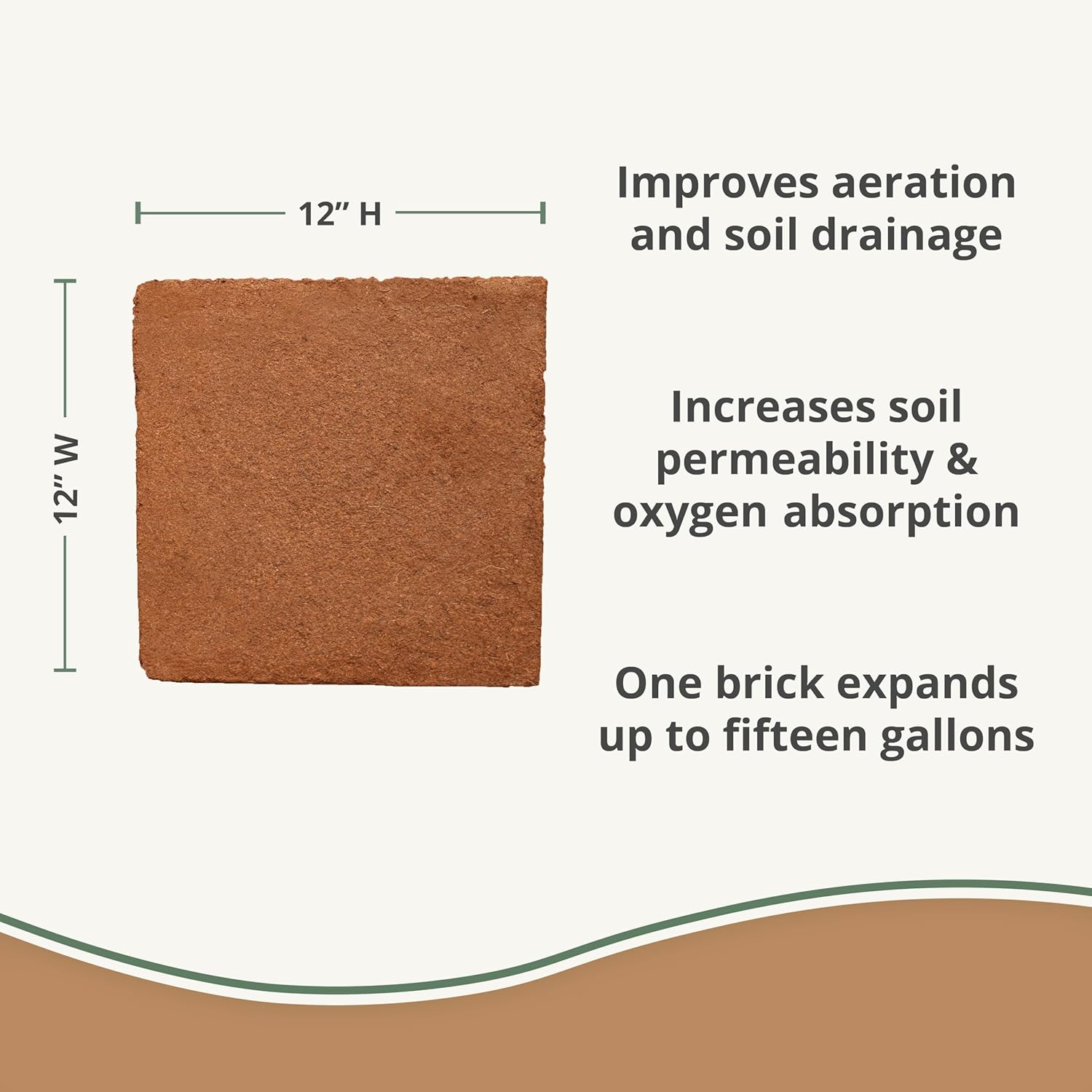 - Improves Soil Structure & Aeration - Coco coir blocks promote soil aeration and drainage, creating air pockets that prevent soil compaction and allow oxygen to reach plant roots more efficiently. As coco fiber breaks down, it adds organic matter to planting soil, improving overall soil fertility in potting mixes and seed starting mixes.