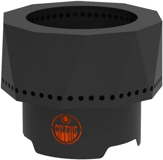 Blue Sky Outdoor Living NHL Edmonton Oilers Ridge Portable Steel Smokeless Fire Pit with Carrying Bag & Spark Screen Kit, Firewood & Wood Pellet