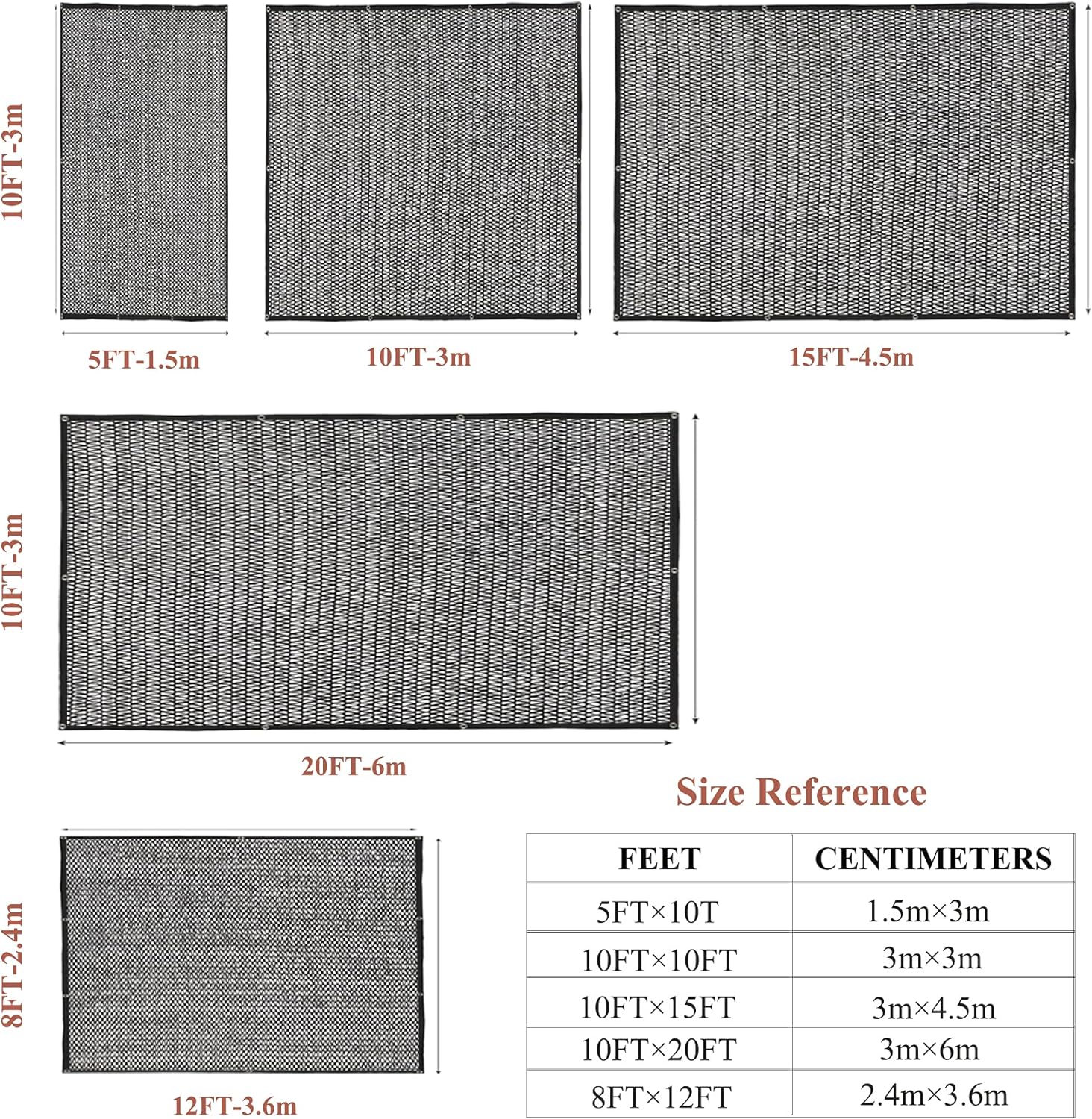 - SIZE - 5ft X 10ft(1.5m x 3m), Taped Edge with Every 2ft One Grommet, Easy to install. You can use our Shade Cloth Plastic Clips and Ball Bungee Cords to fix shade cloth net