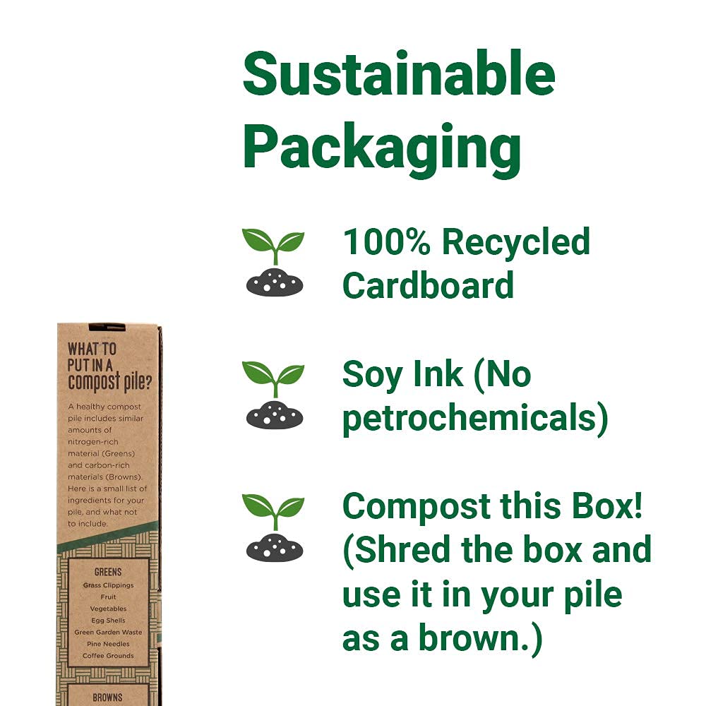 - 100% Compostable Packaging - Printed with soy-based ink, zero waste, no plastic, no Styrofoam, shred the box to use in your compost pile as a brown