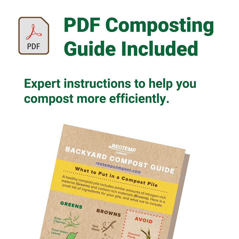 Reotemp 16 Inch Fahrenheit Backyard Compost Thermometer with Digital Composting Guide