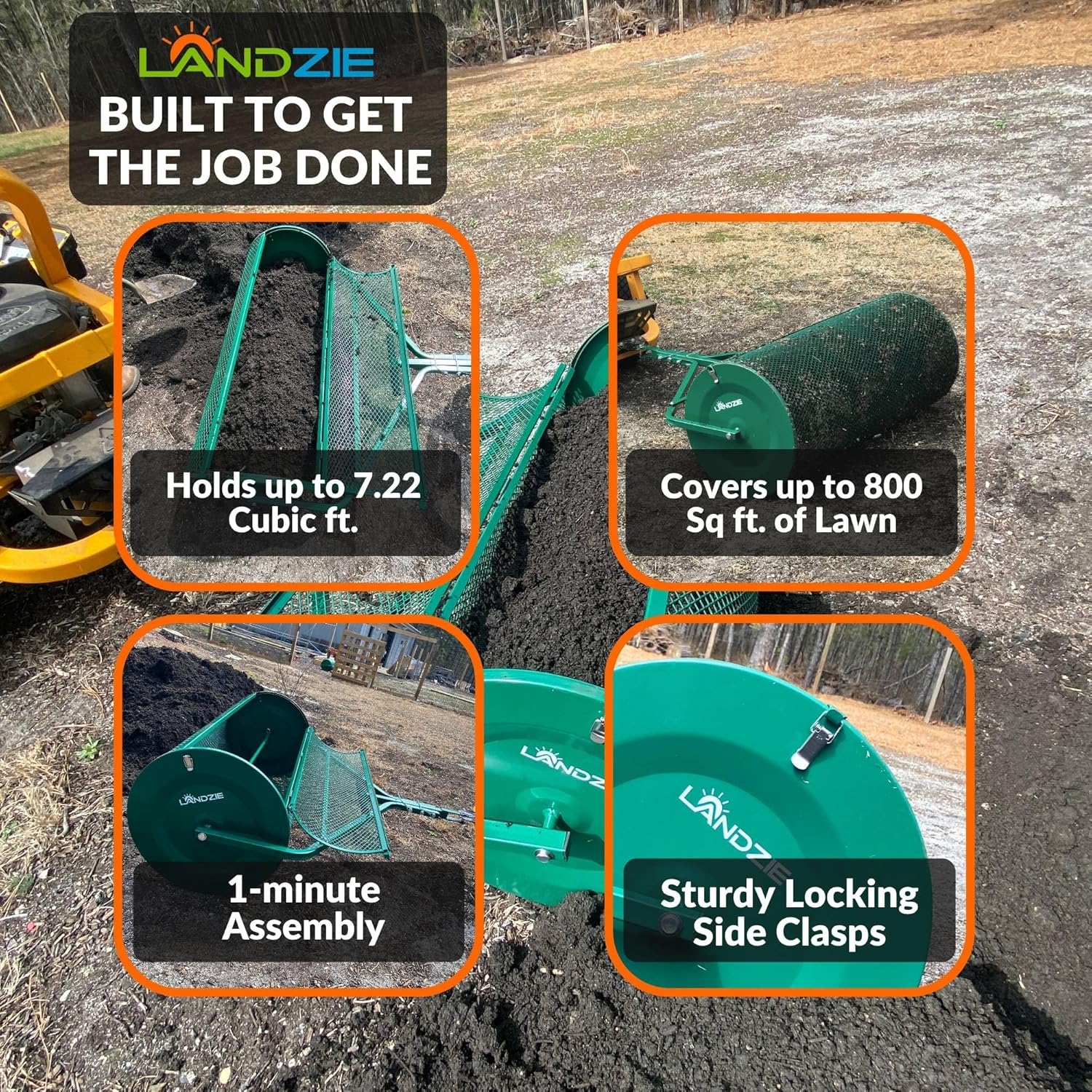 - SAVES MONEY AND TIME OVER TRADITIONAL METHODS: Stop spreading top dressing with a shovel and start using a Landzie! Our rotary trommel compost sifter tool evenly distributes peat moss and soil across your yard, drastically reducing waste and saving money on bulk purchases of peat moss or other materials. Traditional methods of spreading are inefficient and often lead to back strain, which can cost the user days or even weeks of work. Avoid delays and get the job done with a Landzie spreader.