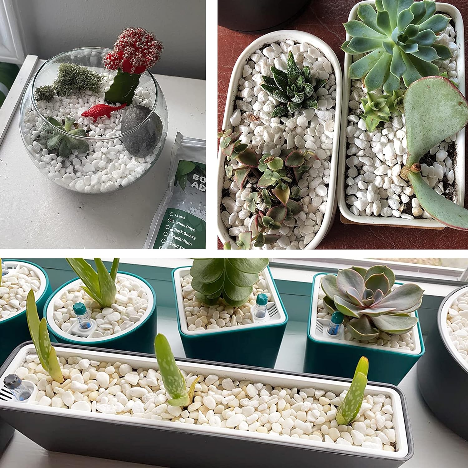 - đăWIDE USESăCommon applications include succulent containers, and potted plants,vases and terrariums.It is perfect for home decor and a creative interior and exterior design. The possibilities are endless with these floral arranging white gravel rocks!