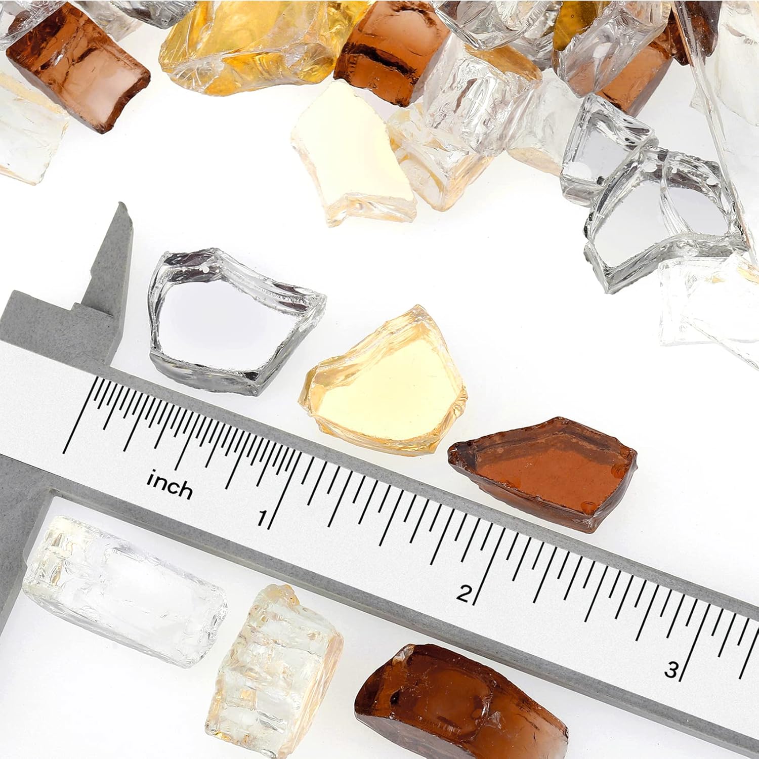 - 【Upgrade For Fireplace Firepit & Other Places】- The Reflective fire glass is a plus for any natural gas or propane fire pit and fireplace to replace the boring Lava Rocks & Gas Logs. They are also the perfect decoration for garden, plant pots, aquarium, fish tank and other places. It also does a wonderful job to cover the naked ground or floor, effectively hiding the unseemly pipes and tubes.