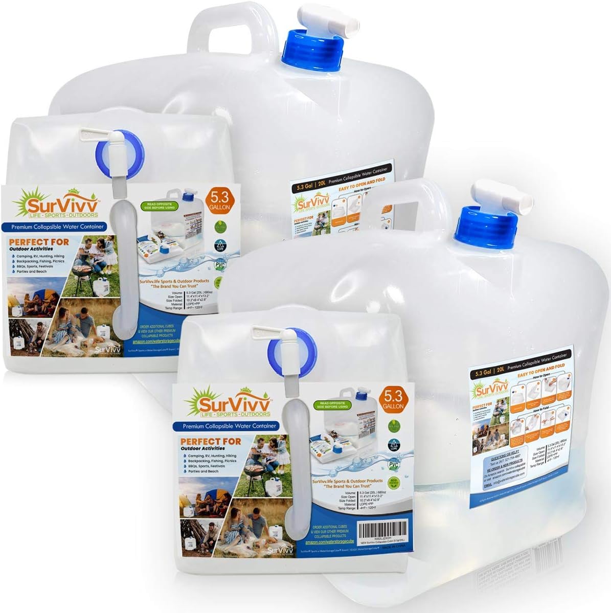 Collapsible Water Container with Spigot, BPA Free, Food Safe Camping Water Storage Cube Jug for Outdoor Hiking Hurricane & Emergency Survival Kit, Portable Foldable Canteen
