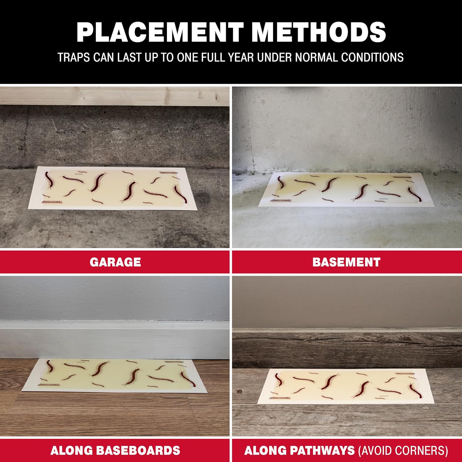 - READY TO USE: Centipede and Insect glue traps are intended for use without bait. For best use, place glue boards along known or suspected centipede pathways and refrain from touching or moving the trap. The indoor insect trap uses a special formula to attract insects. The printed design on the Centipede Glue Trap is more discreet at hiding trapped pests than other glue traps.
