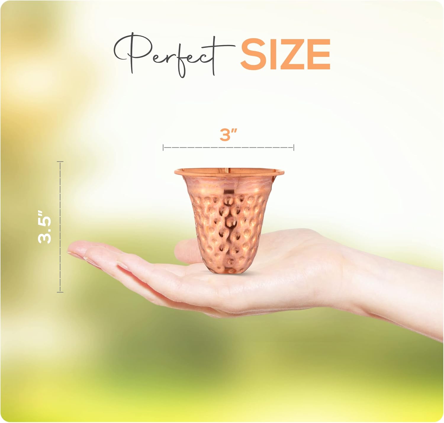 Copper Hammered Rain Chain – Decorative Chimes & Cups Replace Gutter Downspout & Divert Water Away from Home for Stunning Fountain Display – 3’ Long for Universal Fit – Bell Style