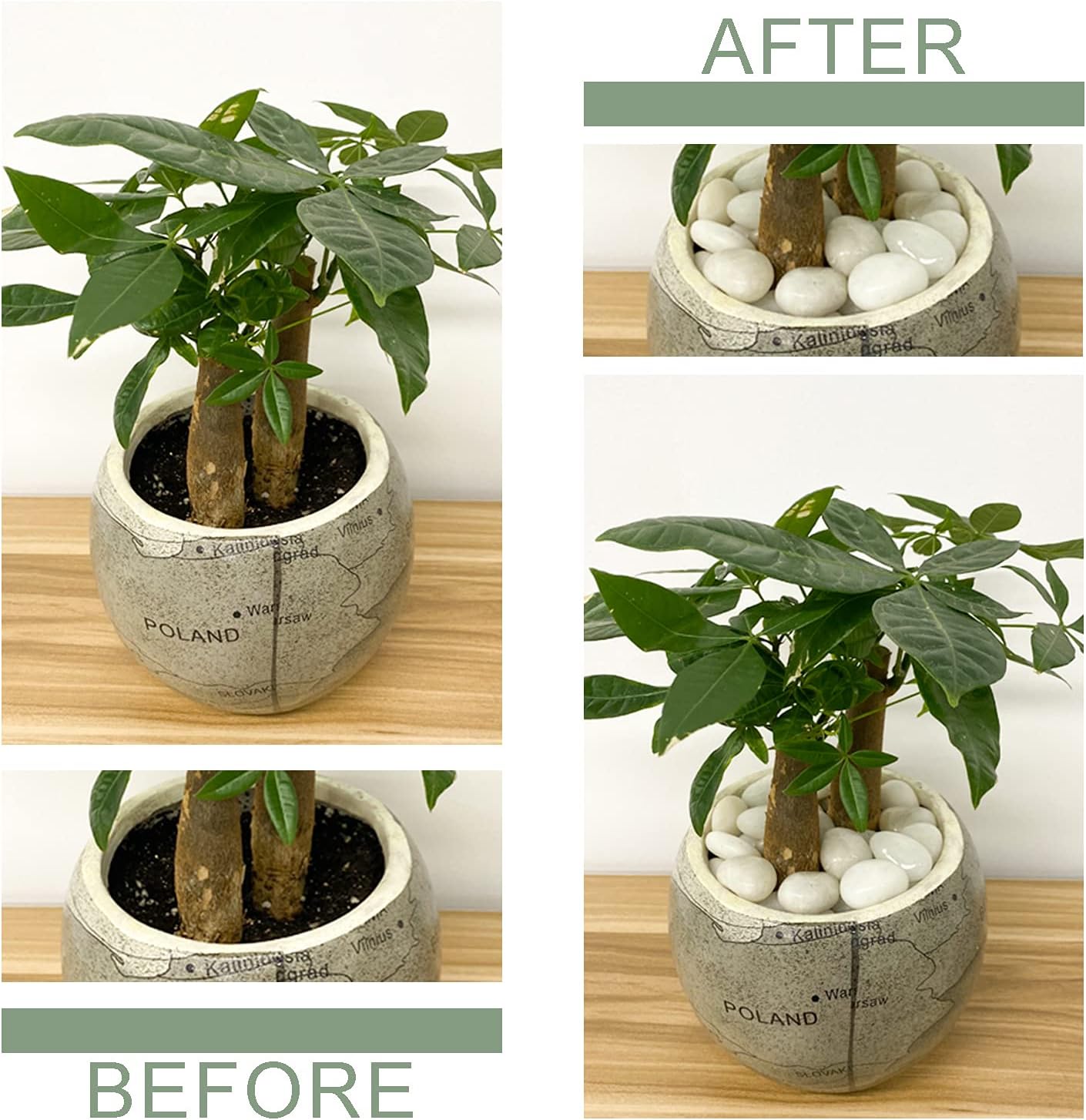 - 【White Rocks for Plants 】White pebbles are rounded and smooth because there are no sharp edges. Due to their shape, river pebbles provide good drainage while decorating your potted plants