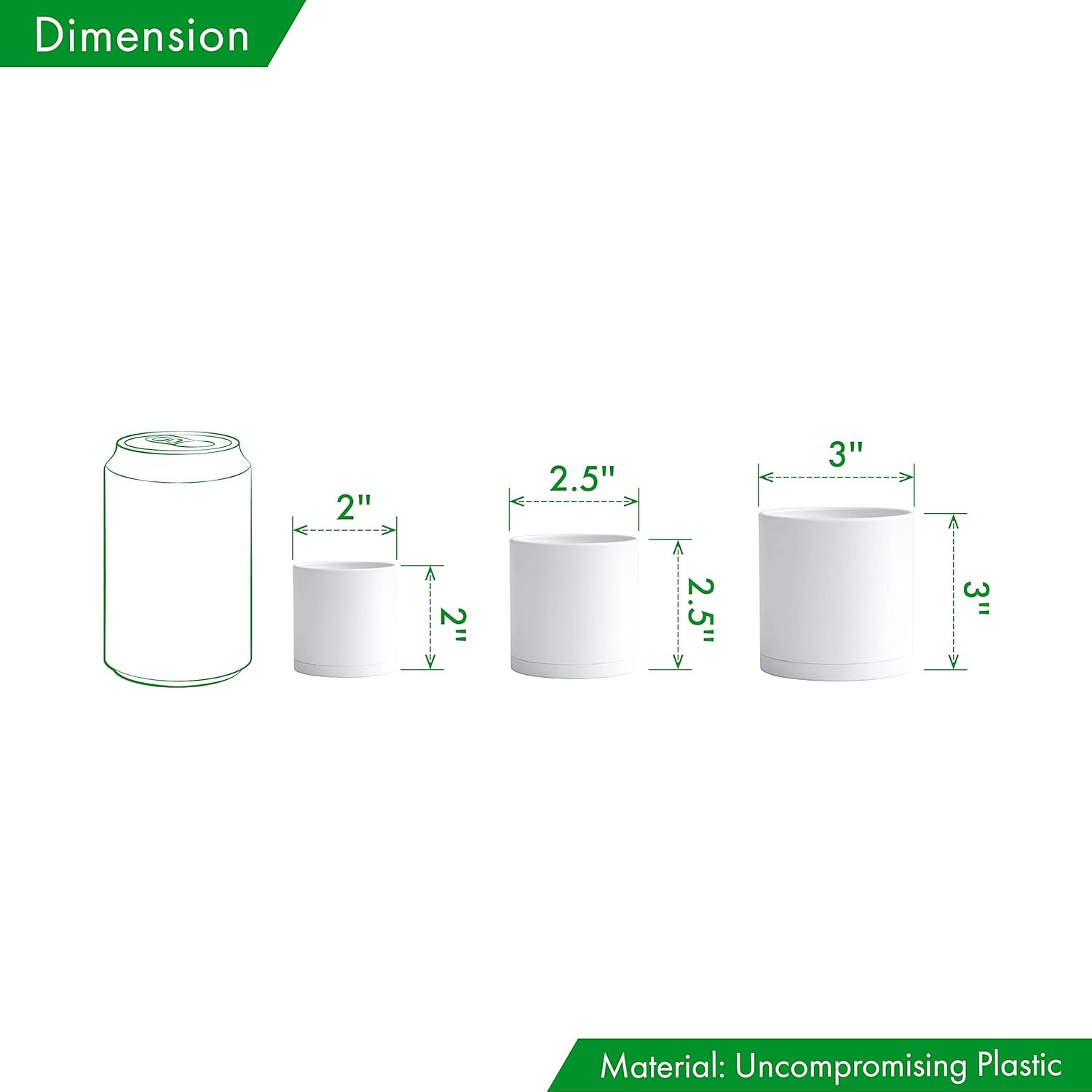 - What's Included: 36 White Plastic Pots with Saucers - 12 of Each (3 Sizes: 2"/2.5"/3"), perfect size for seedlings, young vegetables, herbs, succulents, and flowers.