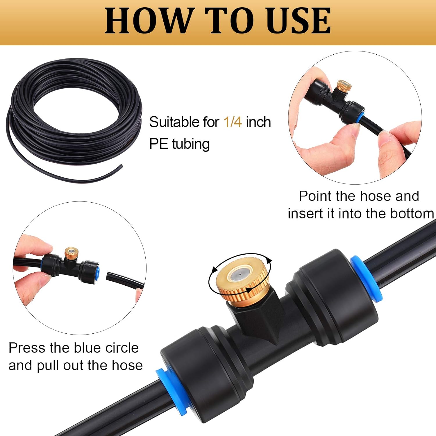 - Wide range of use: our misting nozzle tees for 1/4 inch hoses are the necessary accessories to make fan misting system, misting cooling system, plant watering system, helping you cool down the hot weather, widely suitable for patios, decks, porches, pool and other areas