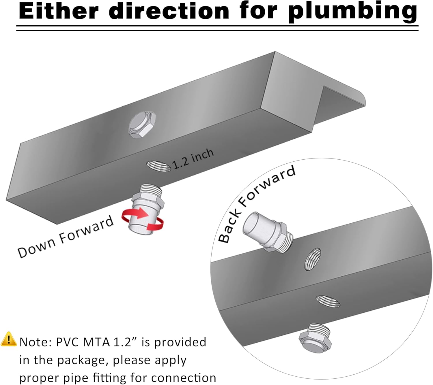 - ❤【EXCELLENT DESIGN】Heavy-duty Materials and Excellent design - The main body of the spillway is welded together by 304 stainless steel, which is more stable for long-term use. The open design not only makes the water flow more smoothly but also makes it easier to clean.