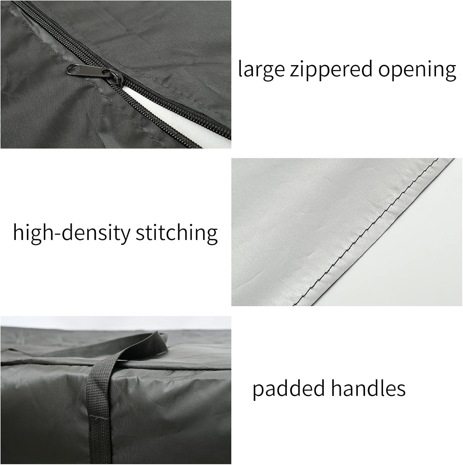 - 【FRIENDLY DESIGN】 With extra-large 68 inch zippered opening, the outdoor cushion storage bags oversized waterproof and more convenient for loading and unloading cushions, chairs, Christmas tree, pillows and so on. With 2 sturdy wide handles, the patio cushion storage bag waterproof extra large bag is comfortable for carrying.
