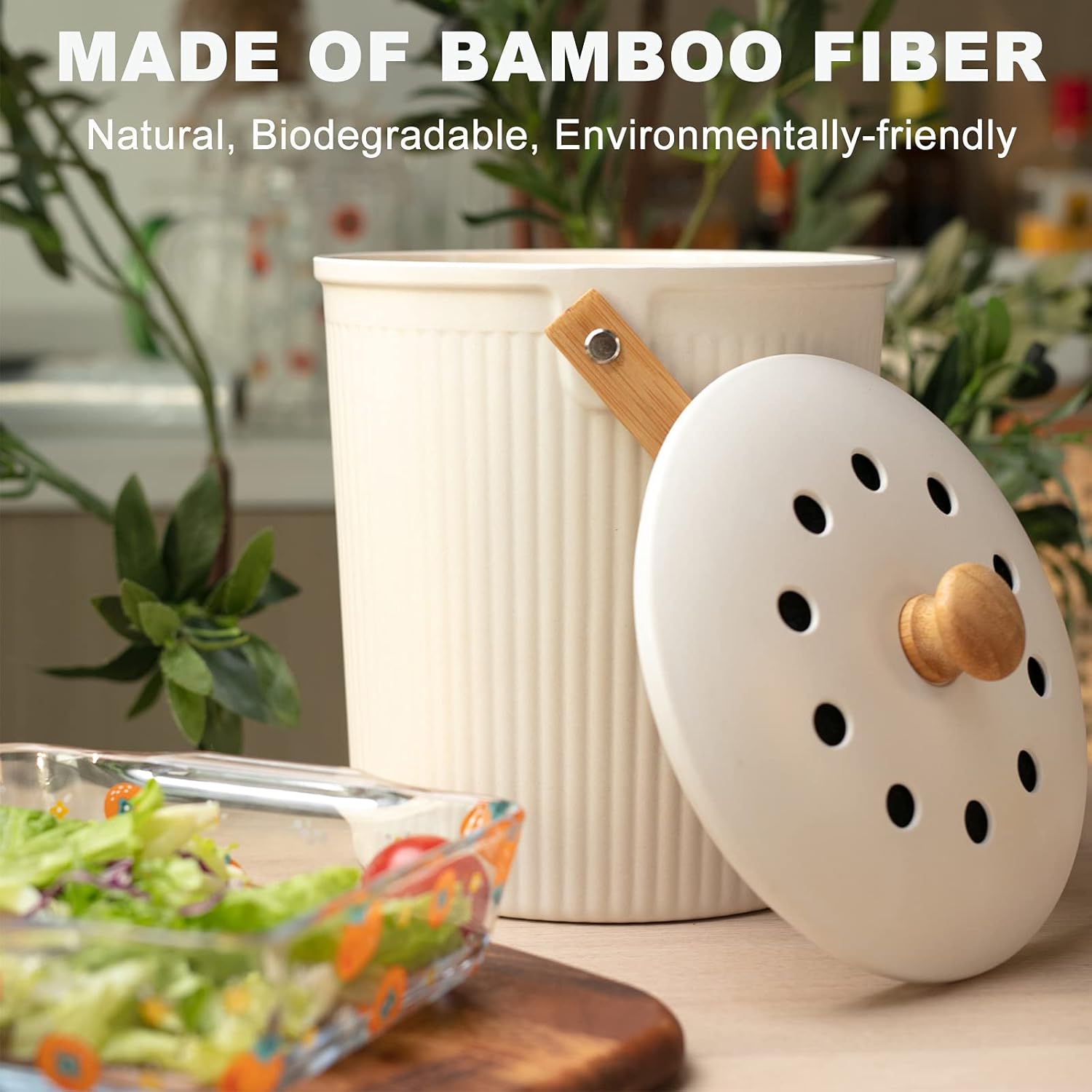 LALASTAR Countertop Compost Bin with Lid, Made of Sustainable Bamboo Fiber, Odorless Kitchen Compost Bucket, 1 Gallon, Cream