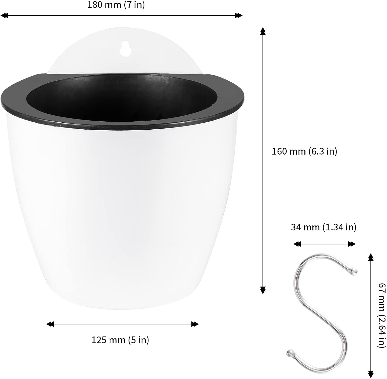 - DIMENSION - You can get 8 pack of wall hanging planter pots along with 8 S hooks for hanging and 8 ropes for water absorbing. The diameter of the top opening is 7 inches and the height is 6 inches with a inner pot diameter of 5.7 inches and a height of 3.93 inches.