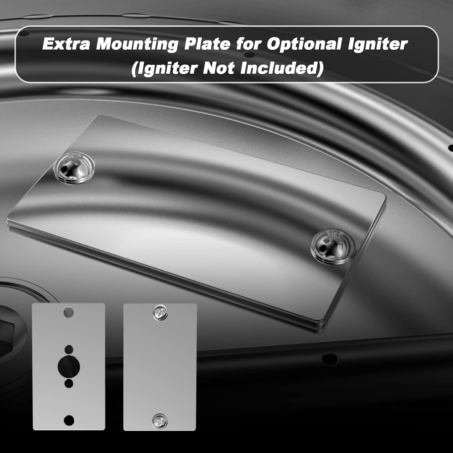 - Male 1/2 inch gas inlet in bottom center of pan for easy Installation; extra mounting plate for optional igniter (igniter not included). Built-in weep holes in the pan to prevent water accumulation.