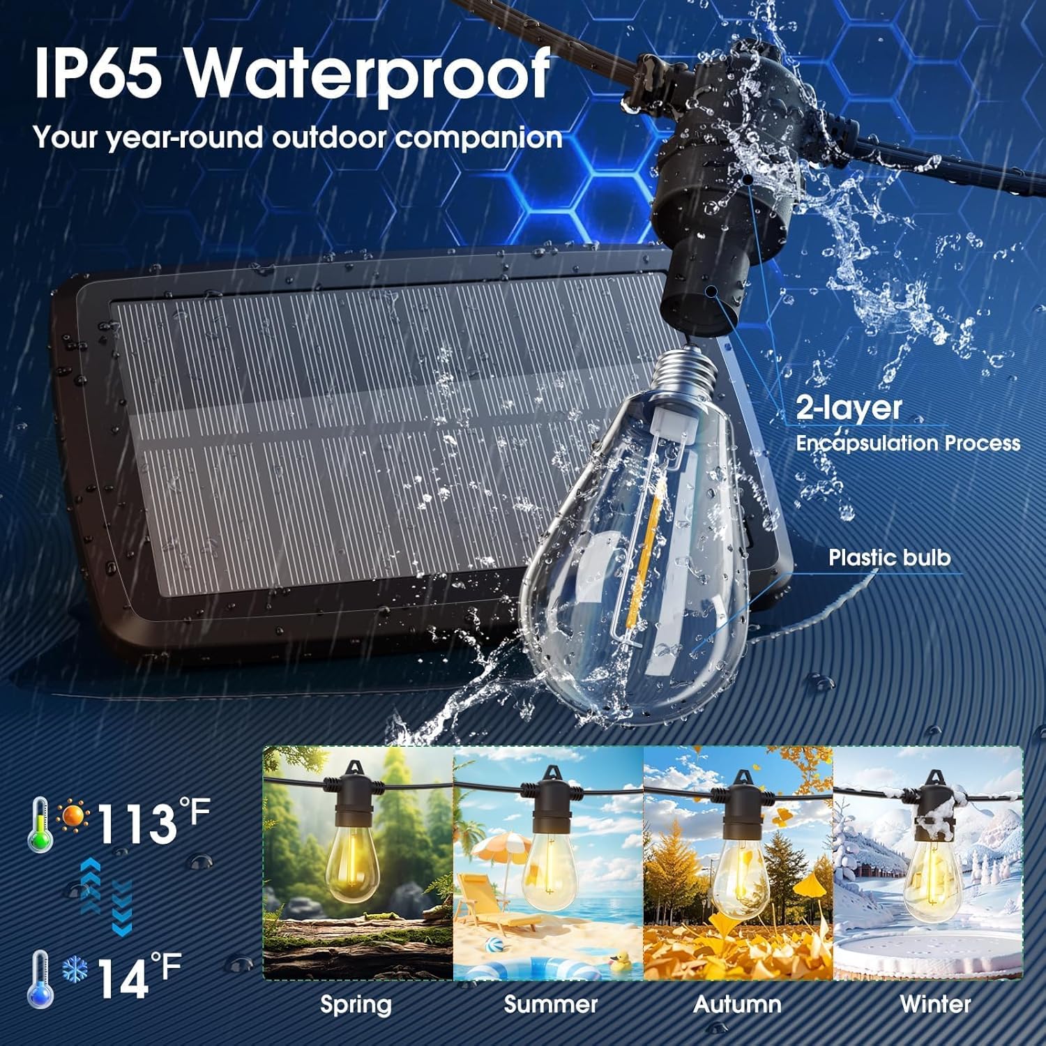 - Excellent Outdoor Ambient Light: Not limited by space and power supply, our solar string lights can be more widely used in outdoor outdoor, such as fire pits, swimming pools, camping, RVs, gardens, patios, gazebos, bistros, etc. Light up your heart, and let the warm soft light flows into your private world.