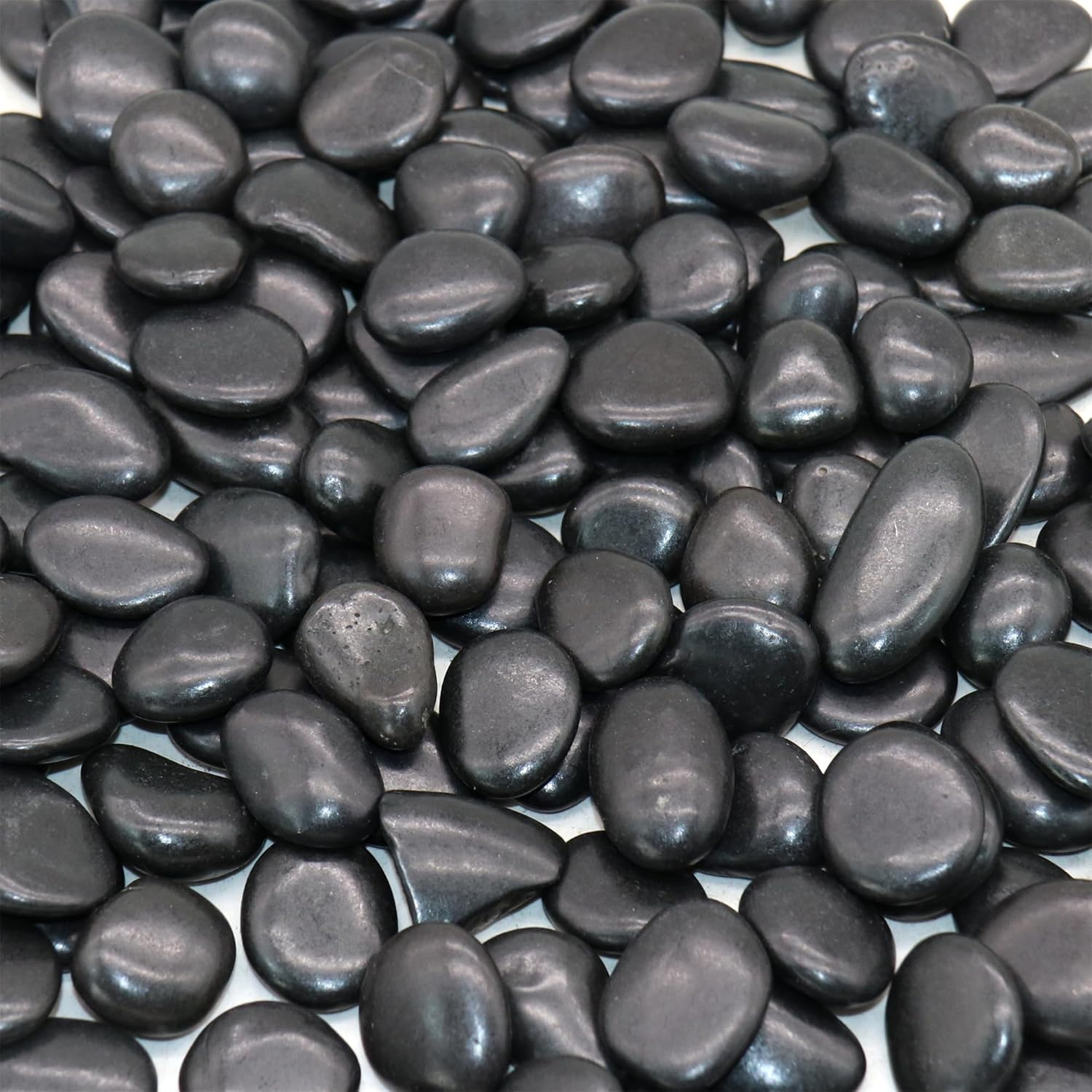 Black Rocks for Plants - Decorative Polished Pebbles 1/2 to 1 Inch 2 lbs. for Garden, Vase Fillers, Succulents, Pots (SM 0.5 to 1 Inch, Polished, 2)