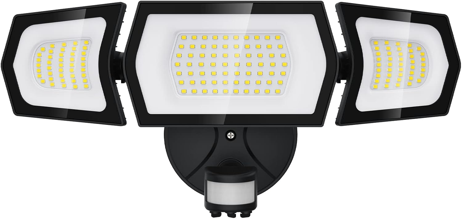 100W LED Flood Light Motion Sensor, 9000LM Motion Security Lights Outdoor, 3 Head Adjustable Floodlight, IP65 Waterproof Exterior Floodlights, 6500K Wall Light for Entryway, Yard, Garage