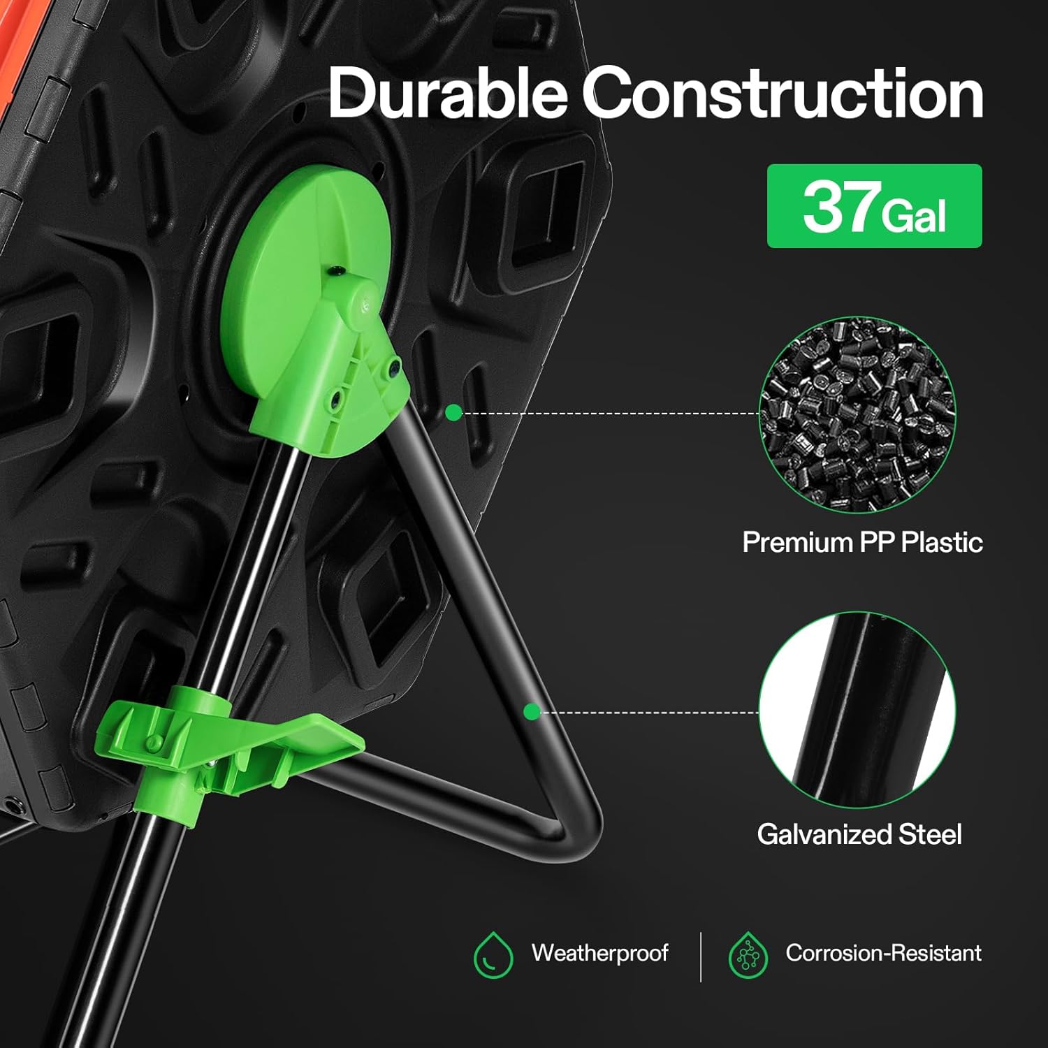 - Tumbling Design: The rotatable design speeds up the composting process by ensuring fully aerated compost materials; The black compost tumbler absorbs the full heat of the sun and allows for a 6-8-week composting process in warm temperatures; Just fill it up and give it a spin every couple of days, no digging or hand mixing required