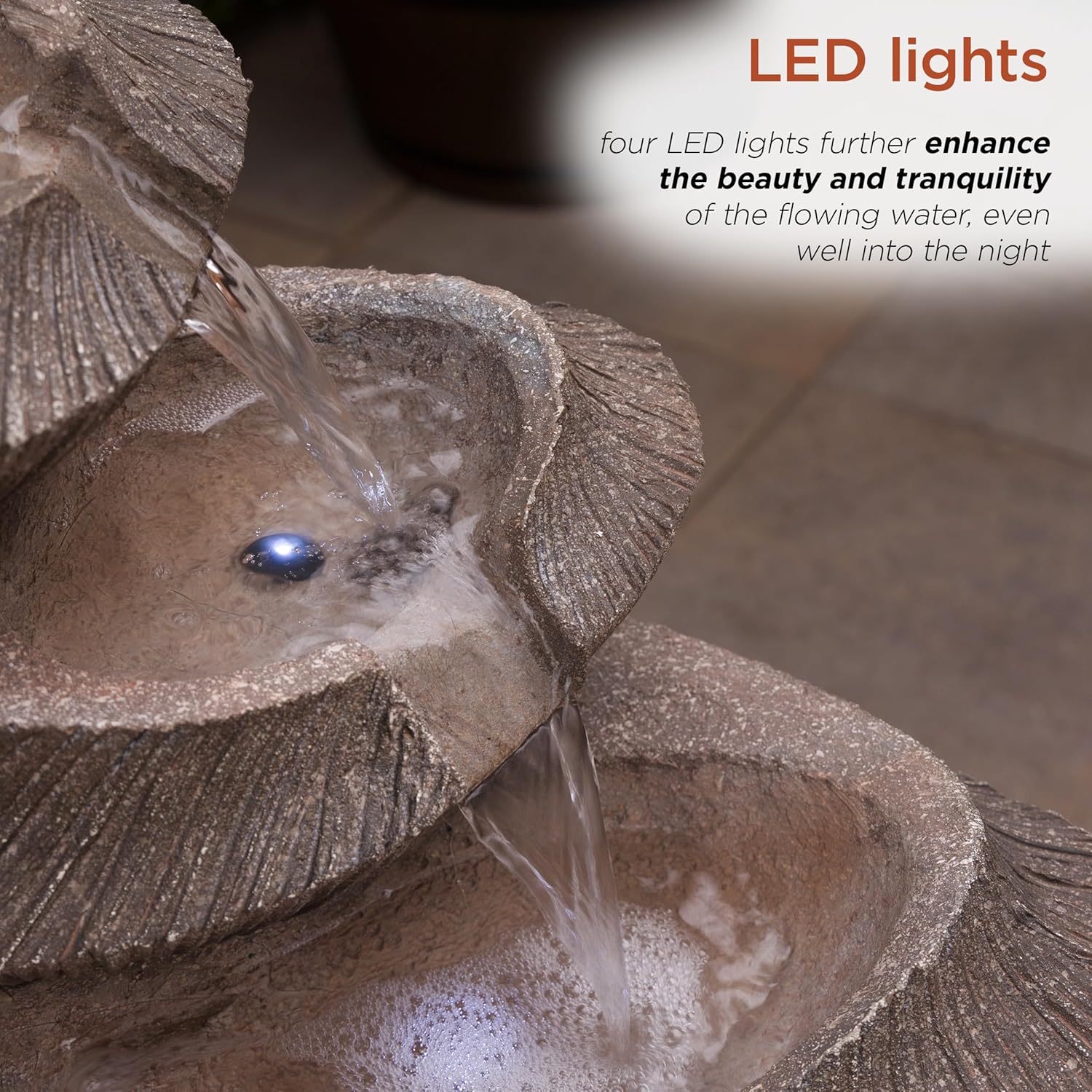- LED LIGHTS: Four LED lights further enhance the beauty and tranquility of the flowing water, even well into the night