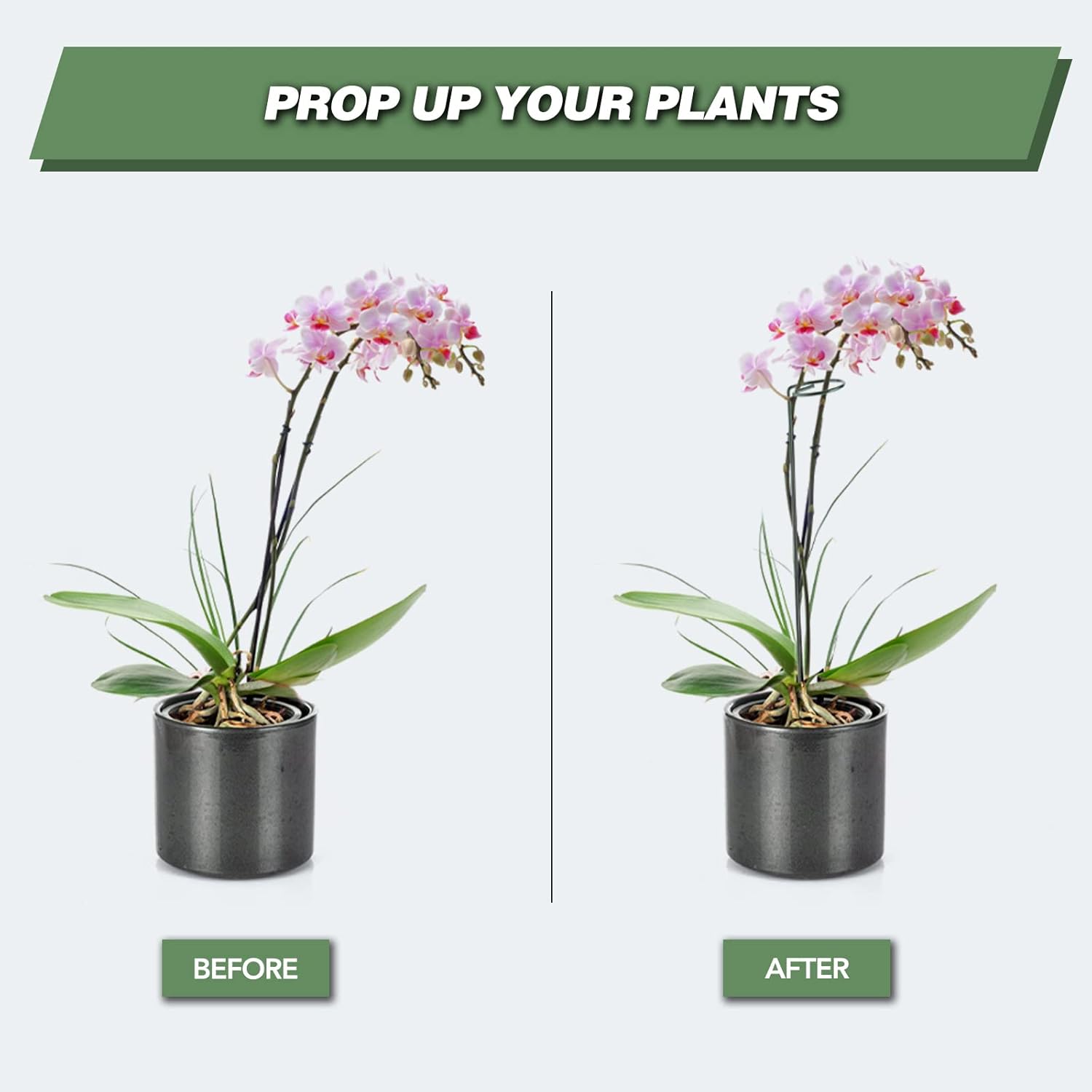 - Plant Stakes With Rings: The uniquely designed support ring of the flower stakes can well secure the stems of the plant. The plant support stake will not affect the growth of plant stems. With this plant stake plants will not be injured by binding.