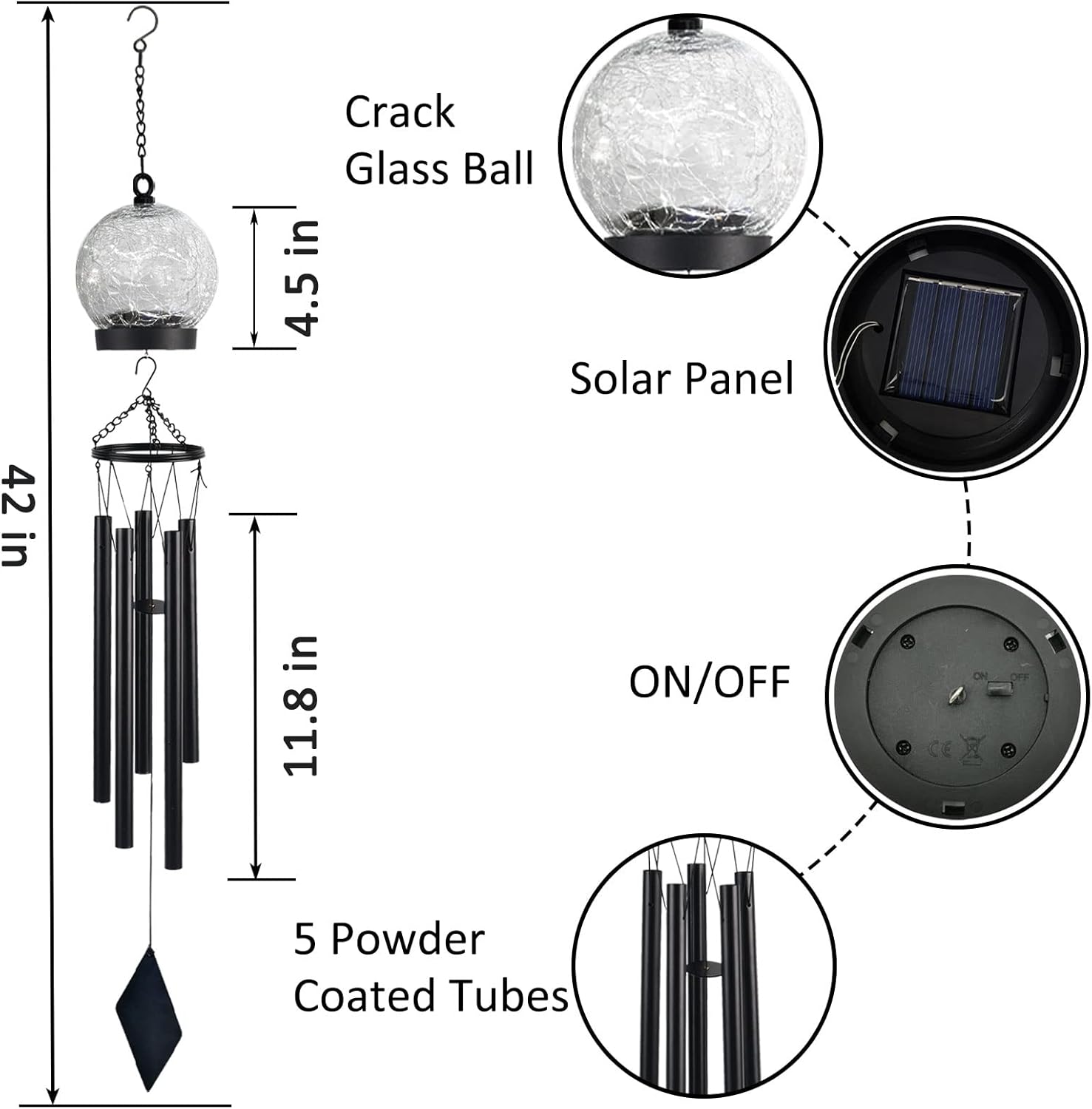 - 【Pretty Garden Décor】: The unique solar wind chimes are designed to add a refreshing and stylish touch to your outdoor. The hanging cracked glass lantern is like a beautiful crystal ball, providing multi-color light and a romantic atmosphere for your yard. It is not only a hanging wind chime for outside but also a solar garden light decor.
