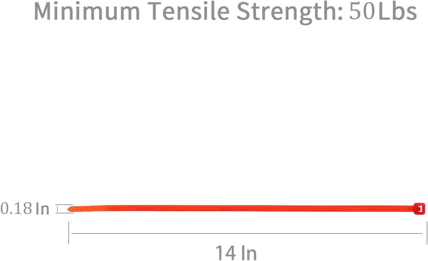 XINGO 100PCS Cable Zip Ties Heavy Duty, Premium Nylon Plastic Wire Ties with 50 Pounds Tensile Strength, Self-Locking Black Nylon Zip Ties for Indoor and Outdoor (14 inch, Red)