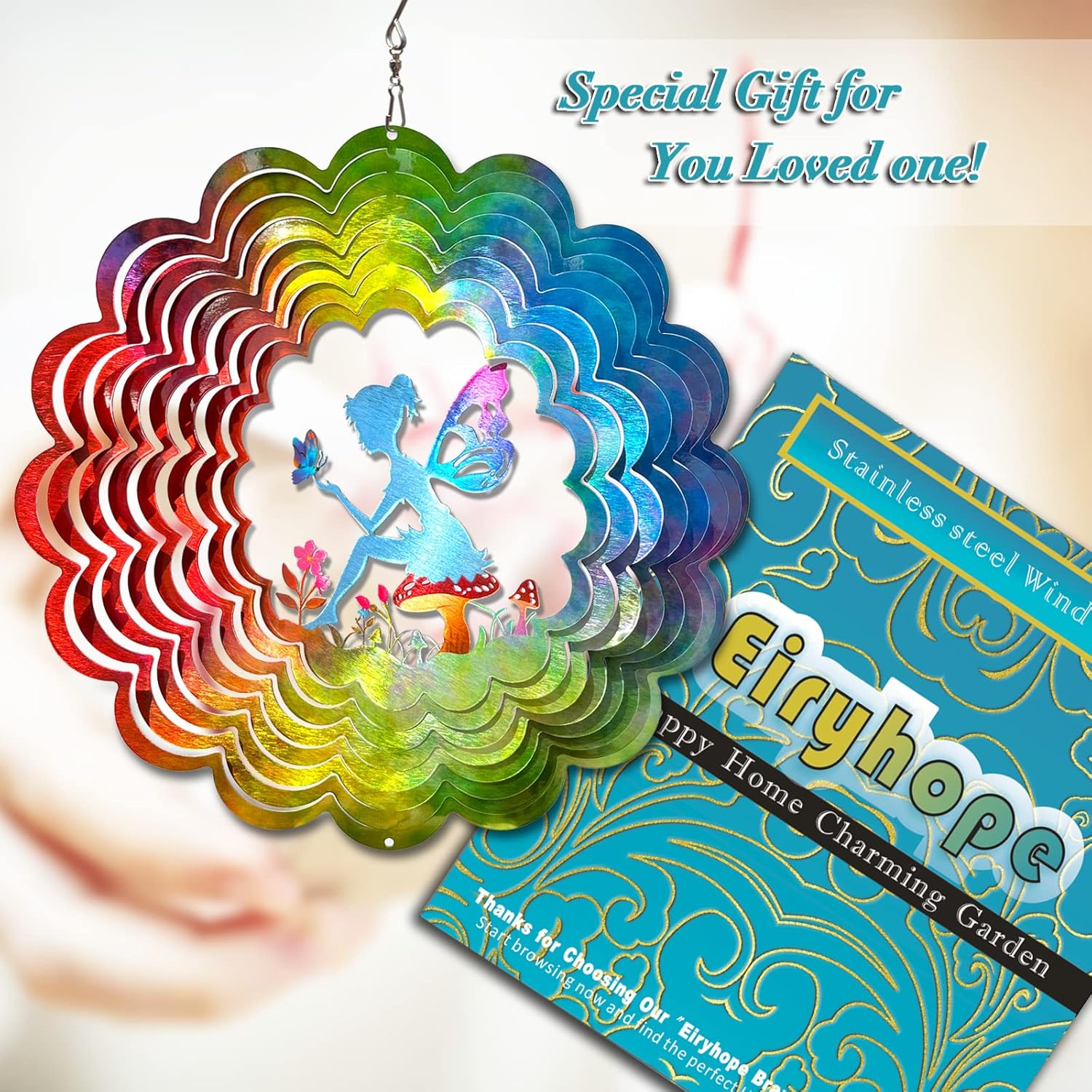 - 【Easy to Use 3D Wind Spinner】The garden wind spinner is easy to shape and spin. Its 3D design makes it easy to transform into a hanging 3D wind sculpture. This fairy wind spinner's ingenious metal construction catches more breezes to spin. The 12 inch wind spinner is an eye-popping focal point.