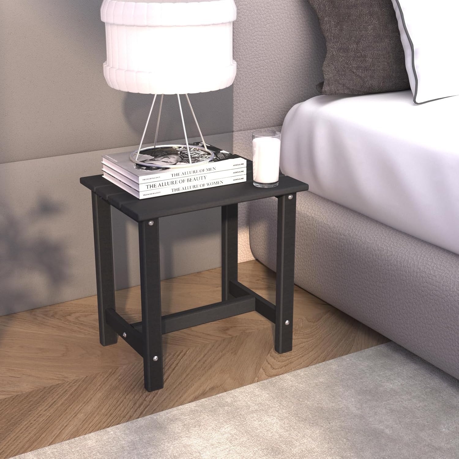 - ćDurable End Tableć Made of premium HDPE (High Density Polyethylene), which great in sun-resistant, water-resistant and wear-resistant, this outdoor side table so durable and non-deformable for several years with easy maintenance. No issues with warping from the hot summer to the cold winter.
