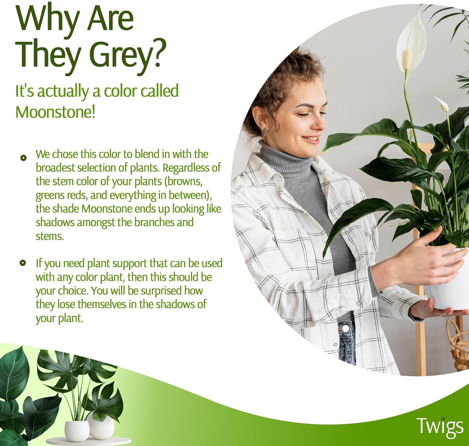 - ESSENTIAL PLANT ACCESSORIES: Twigs GA plant support stakes are a must-have for any plant lover. These stakes offer reliable support without sacrificing the aesthetic appeal of your living space. Note: Twigs are not meant to support large plants over 5 ft or stems greater than 3/4".