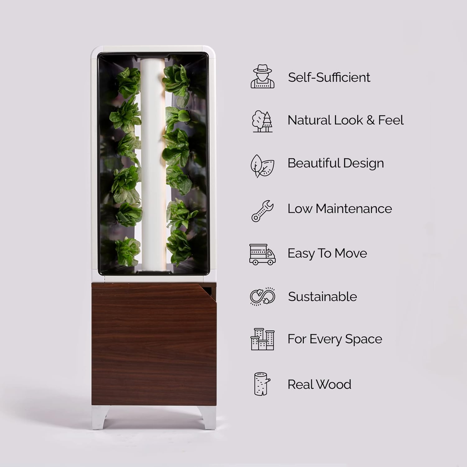 - Elegant & Functional: The EVE doubles as modern furniture, blending sleek design with sustainable indoor gardening. Perfect for small apartments or condos.