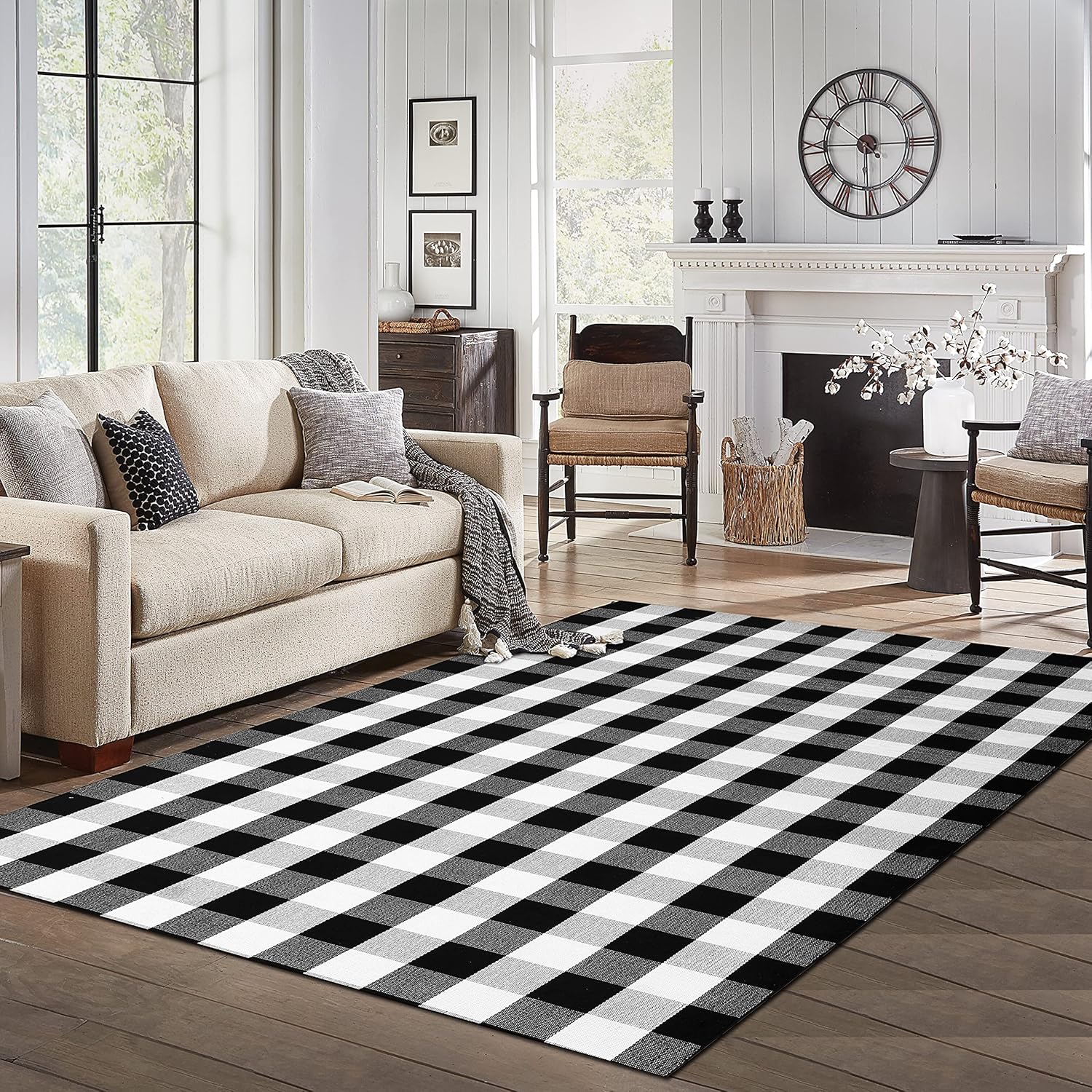 IOHOUZE Buffalo Plaid Rug 5x7 Ft Indoor Outdoor Rug, Washable Rugs for Living Room, Spring Summer Welcome Mats Outdoor, Black White Rug for Farmhouse/Entryway/Home Entrance
