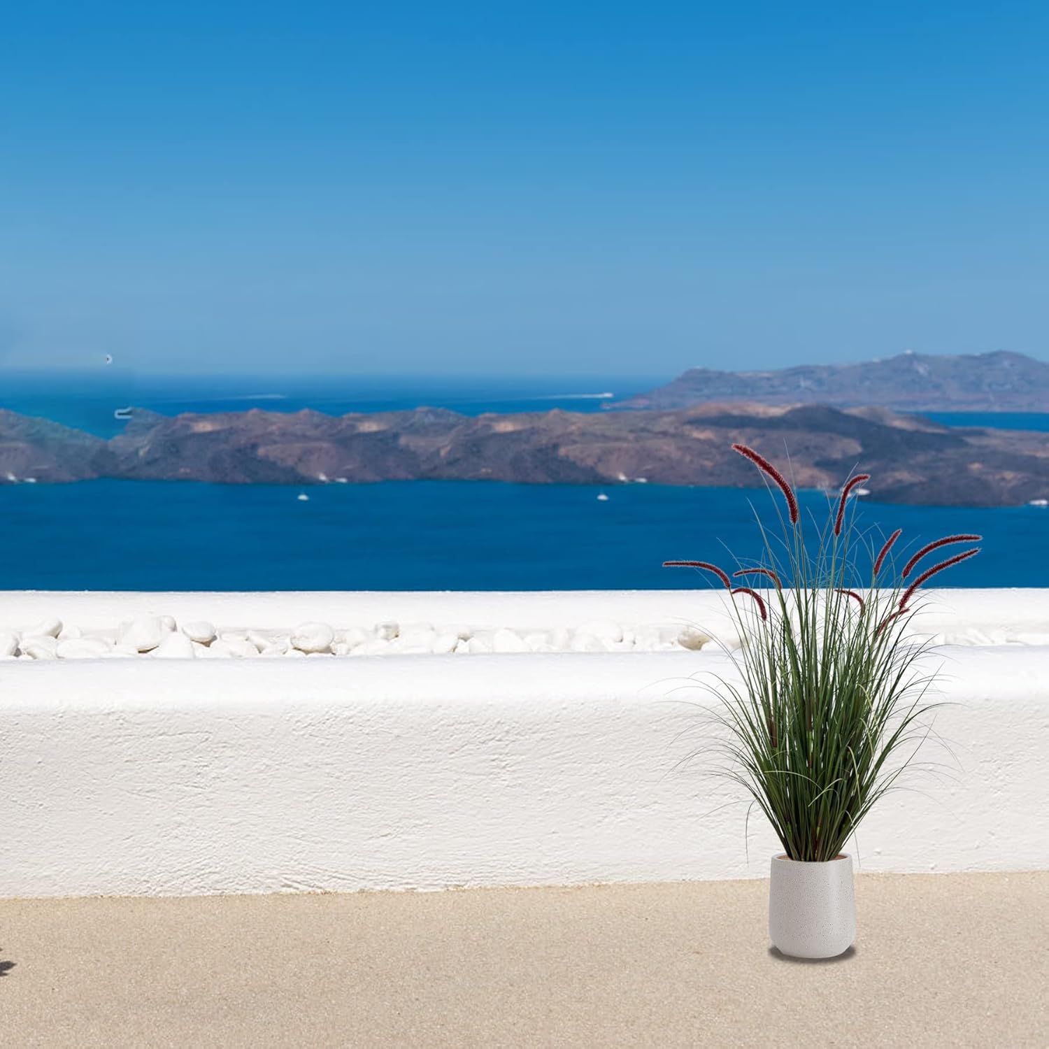 - 1.This faux plant features close to natural green grass with 10 Purple silk flowers, all inside a durable and solid flowerpot. Artificial Setaria grass is 47 inches high.base with a black plastic pot in 5'' dia ,5.9''high.itβs easy to put it in a nice bigger planter as desired.