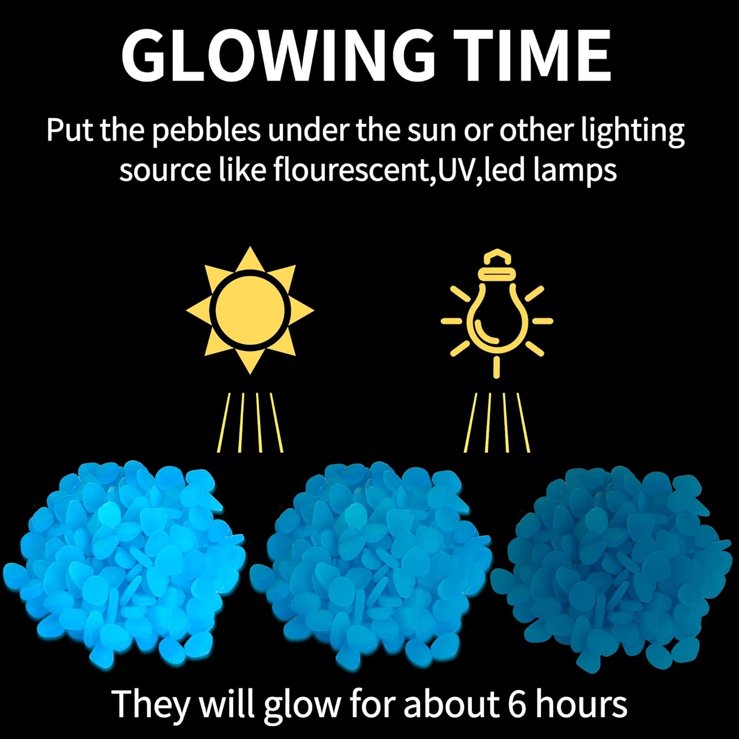 OSOPOLA 150 PCS Luminous Stones - Blue Glow Rocks Decorations DIY Decorative Pebbles for Aquarium Fish Tank Sidewalk Garden Path Patio Terrace Lawn Yard Ornaments Blueness Cobbles Decor FD05BL150