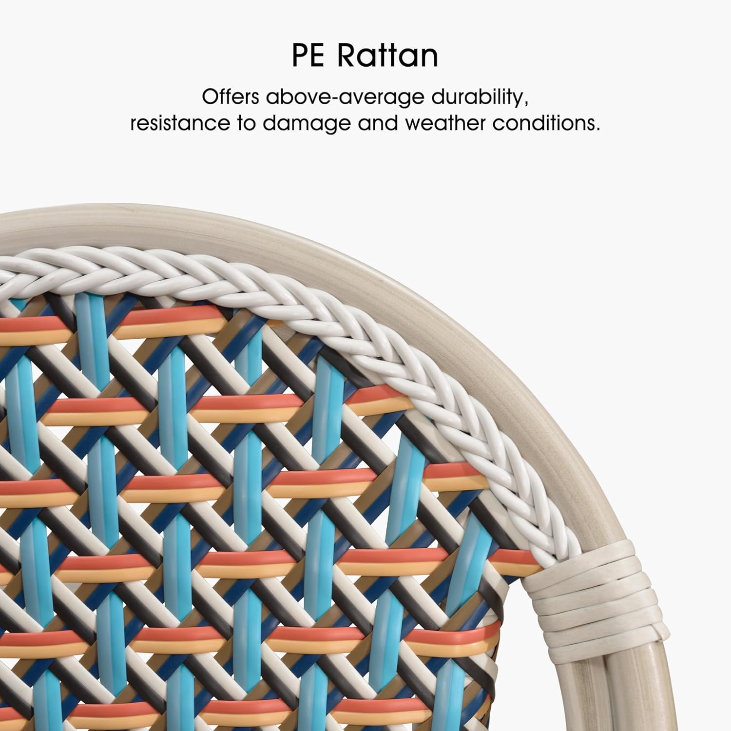PURPLE LEAF French Bar Stool Set of 2 White Print Finish Patio Bar Stools with Back Rattan Chairs Wicker Bar Height Stool 30" with Footrest Kitchen Island Stools Outdoor Barstool Colorful